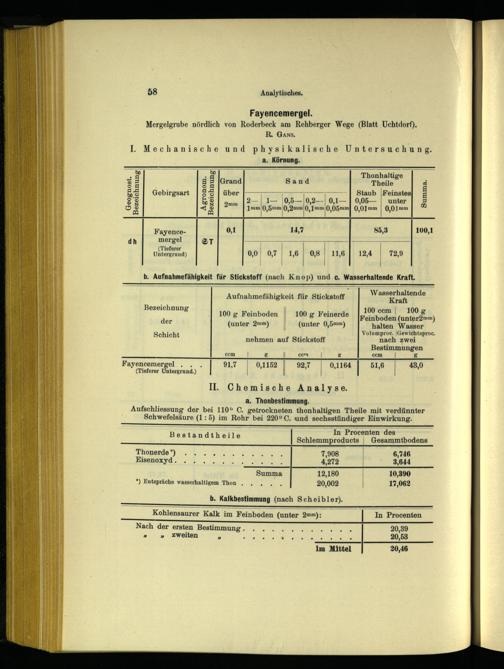 Fayencemergel. Mergelgrube nördlich von Roderbeck am Rehberger Wege(Blatt Uchtdorf). R. Gans,; I. Mechanische und physikalische Untersuchung. a. Körnung.