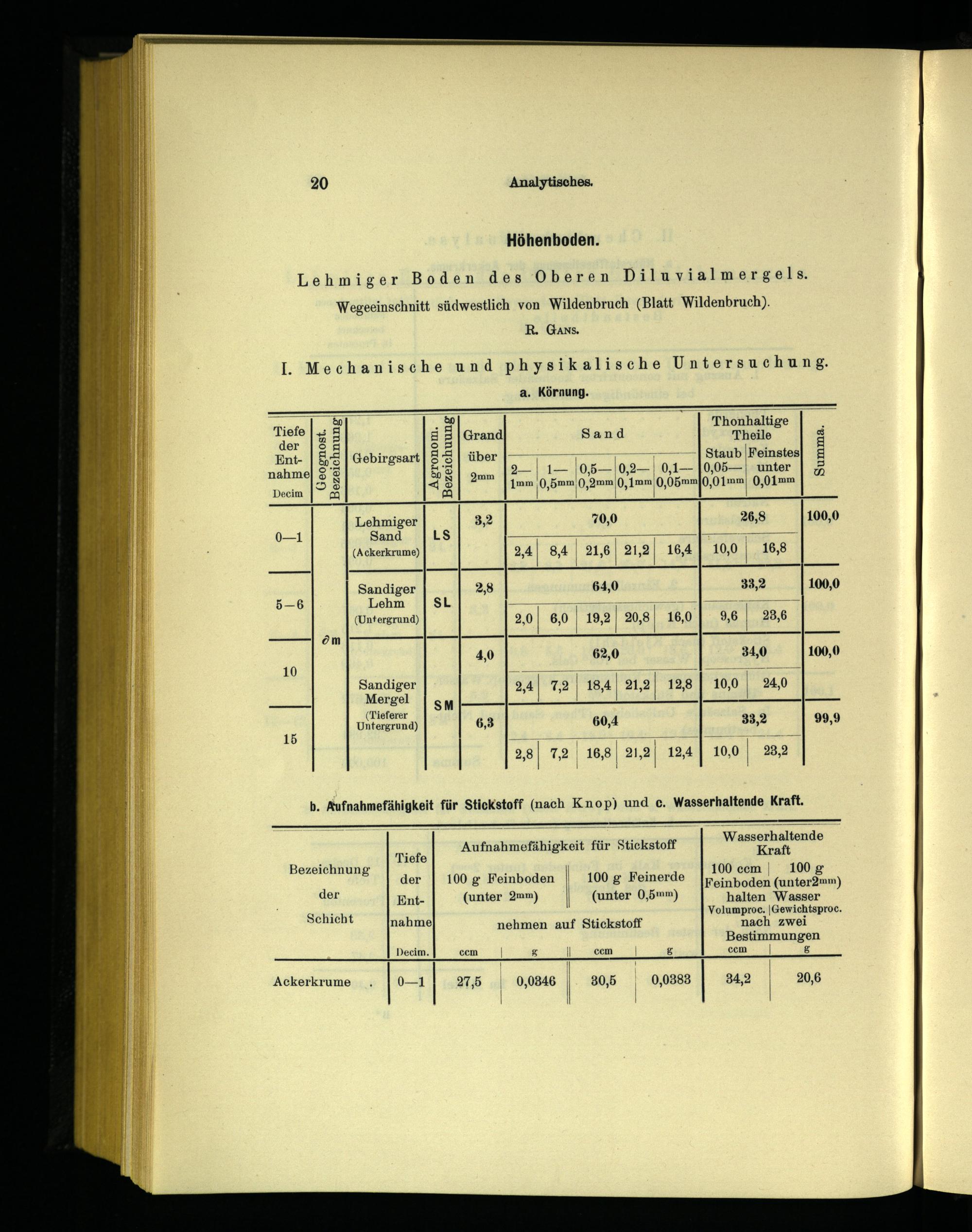 b. Aufnahmefähigkeit für Stickstoff(nach Knop) und c. Wasserhaltende Kraft.