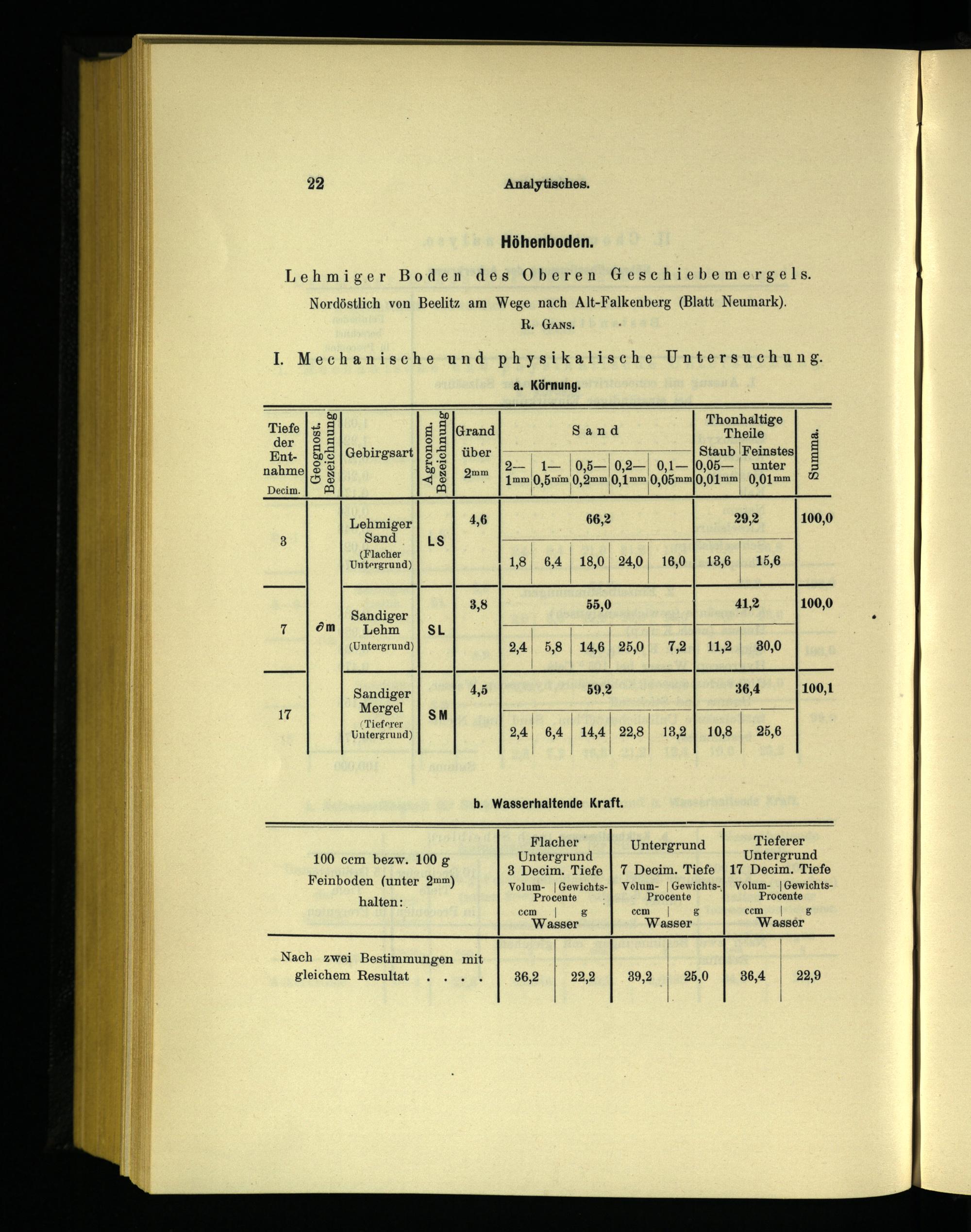 Lehmiger Boden des Oberen Geschiebemergels. Nordöstlich von Beelitz am Wege nach Alt-Falkenberg(Blatt Neumark ). R. Gans, Il. Mechanische und physikalische Untersuchung.