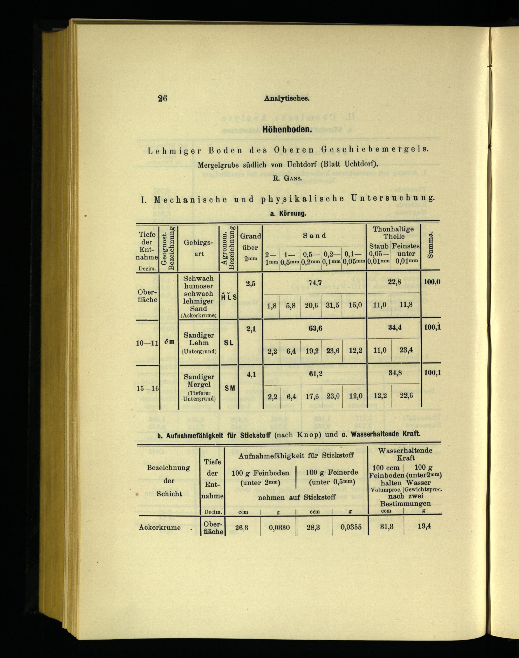 b. Aufnahmefähigkeit für Stickstoff(nach Knop) und c. Wasserhaltende Kraft.