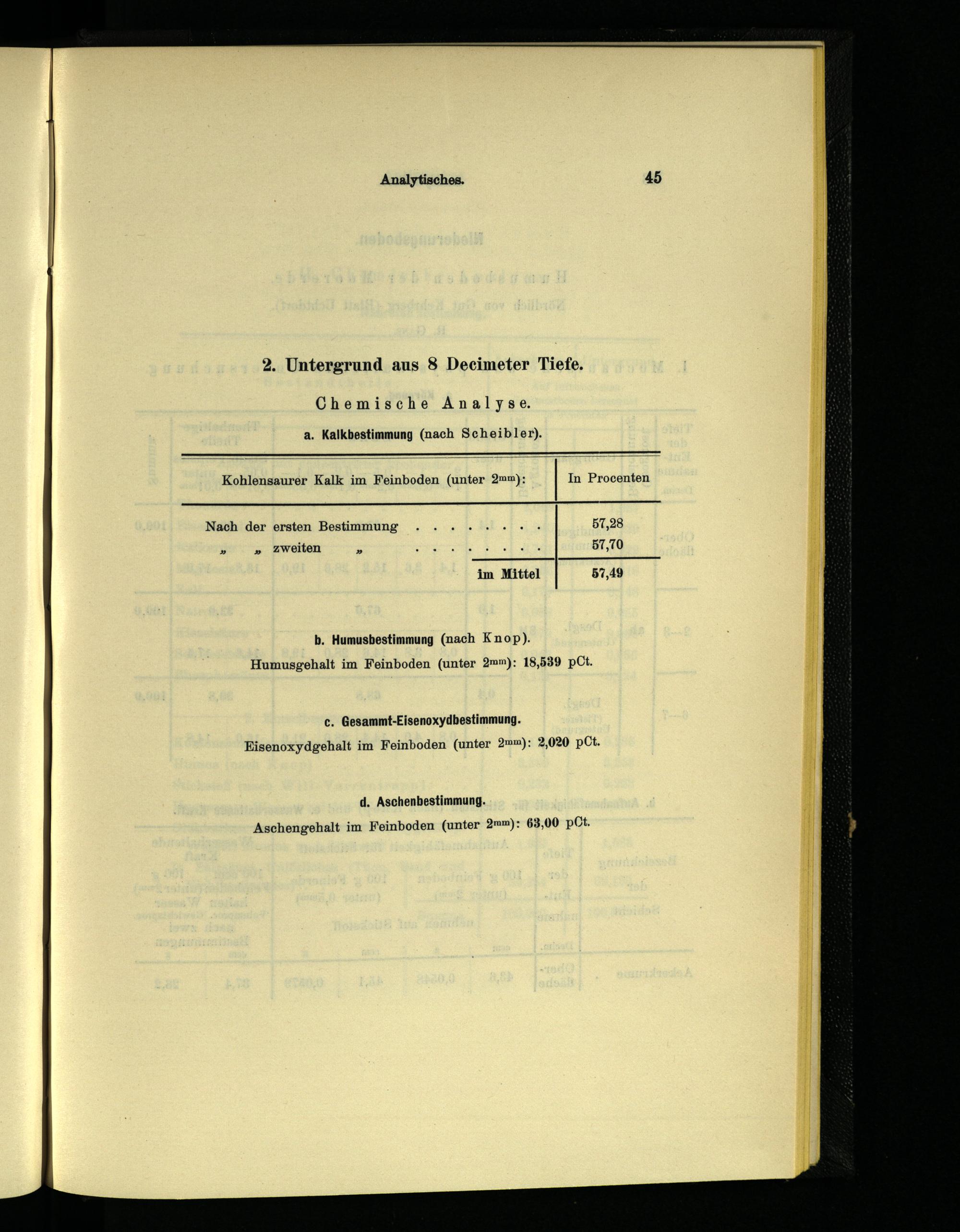 b. Humusbestimmung(nach Knop). Humusgehalt im Feinboden(unter 2mm): 18,539 pCt.