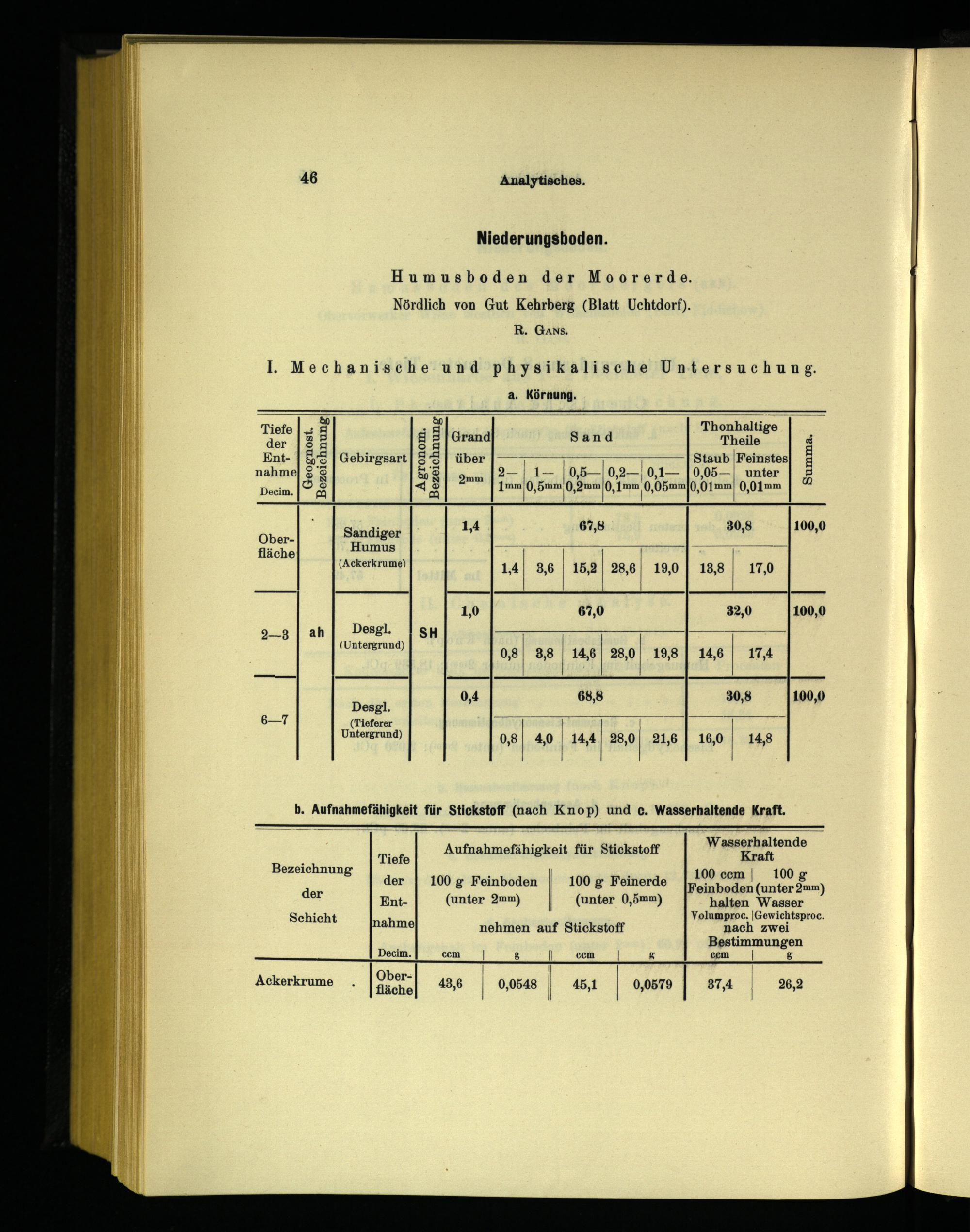 Wasserhaltende Kraft 100 ccm 100 g Feinboden(unter 2mm) halten Wasser Volumproc.|Gewichtsproc. nach zwei Bestimmungen ccm g