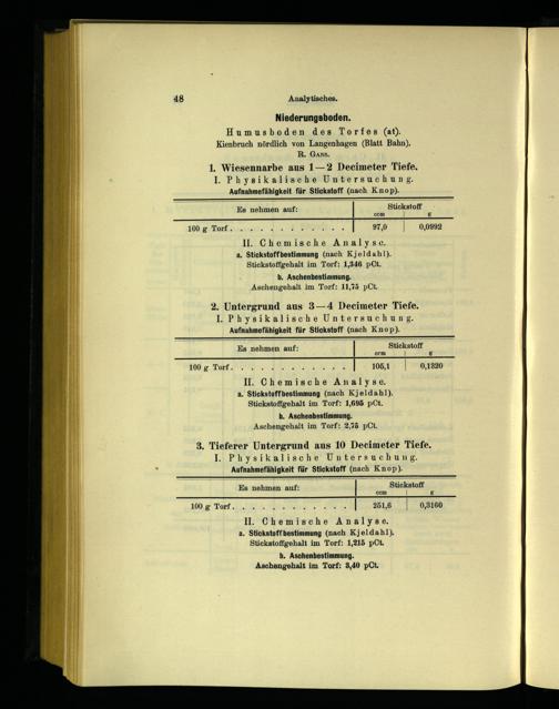 1. Wiesennarbe aus 1—2 Decimeter Tiefe. Il. Physikalische Untersuchung. Aufnahmefähigkeit für Stickstoff(nach Knop).
