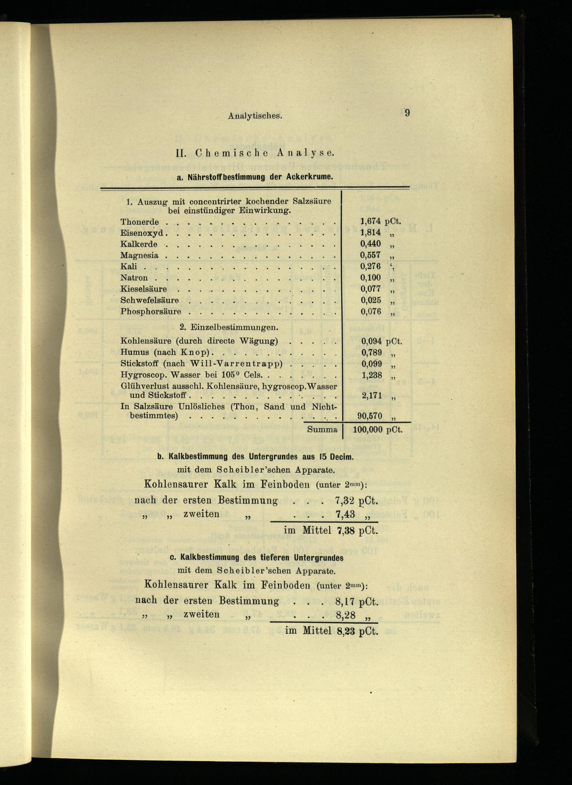 b. Kalkbestimmung des Untergrundes aus 15 Decim. mit dem Scheibler’schen Apparate,