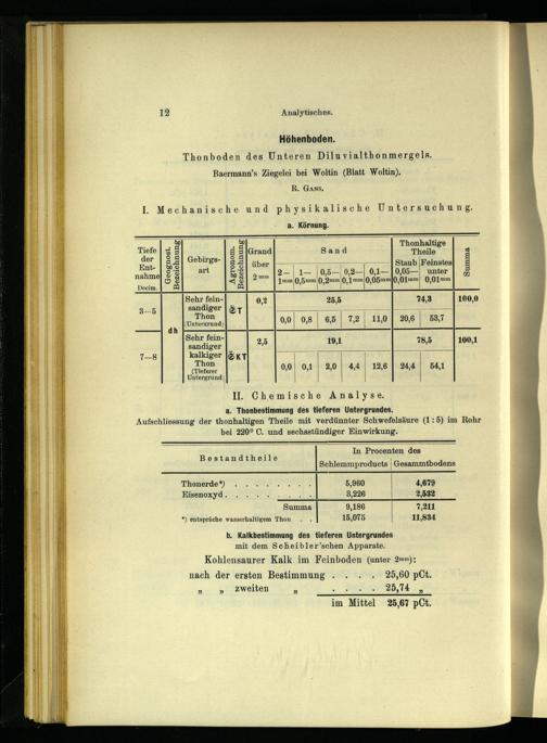 Il. Chemische Analyse. a. Thonbestimmung des tieferen Untergrundes. Aufschliessung der thonhaltigen Theile mit verdünnter Schwefelsäure(1:5) im Rohr bei 220° C. und sechsstündiger Einwirkung.