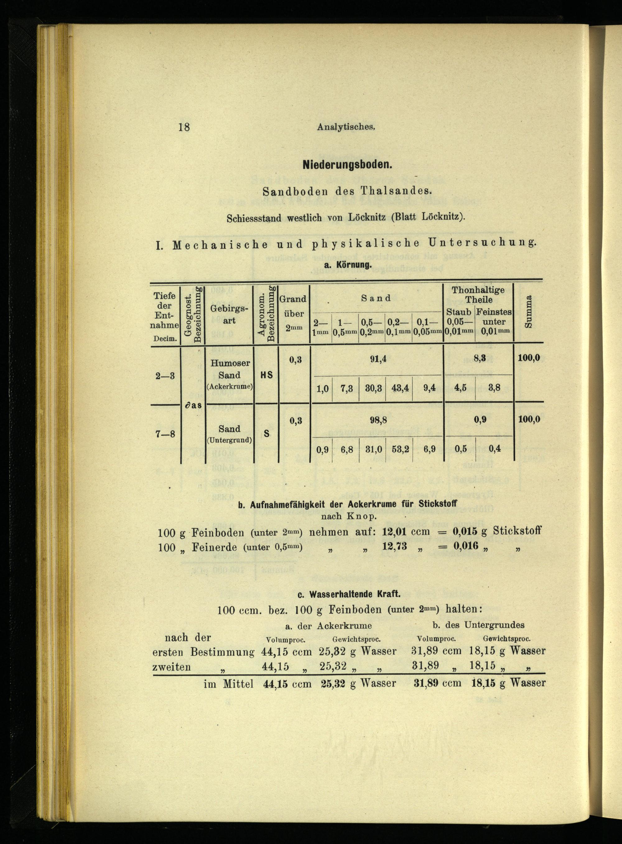 c. Wasserhaltende Kraft. 100 ccm. bez. 100 g Feinboden(unter 2mm) halten: a. der Ackerkrume b. des Untergrundes