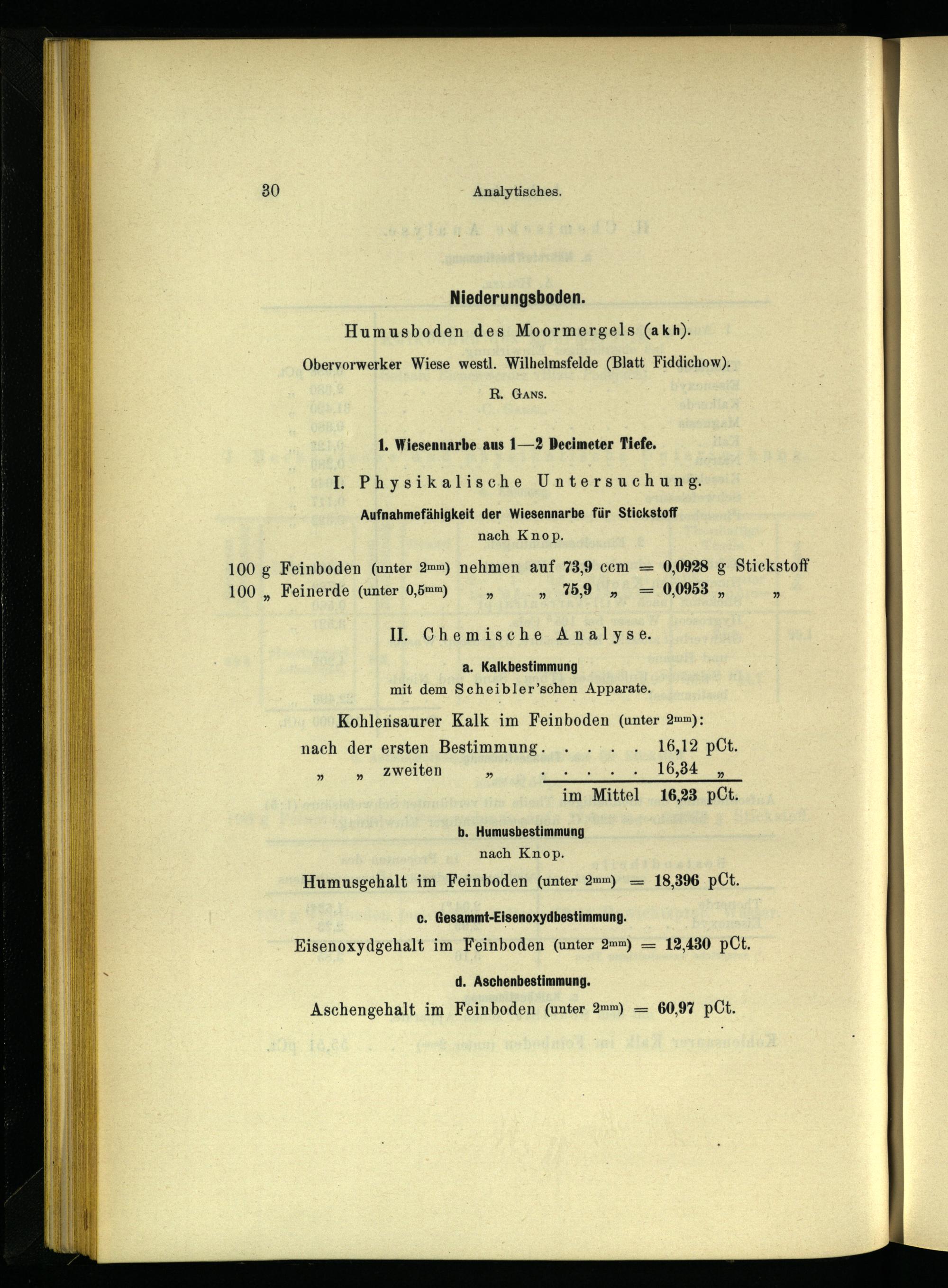 100 g Feinboden(unter 23mm) nehmen auf 73,9 ccm 0,0928 g Stickstoff 100„ Feinerde(unter 0,5mm)»„1069 0,0953