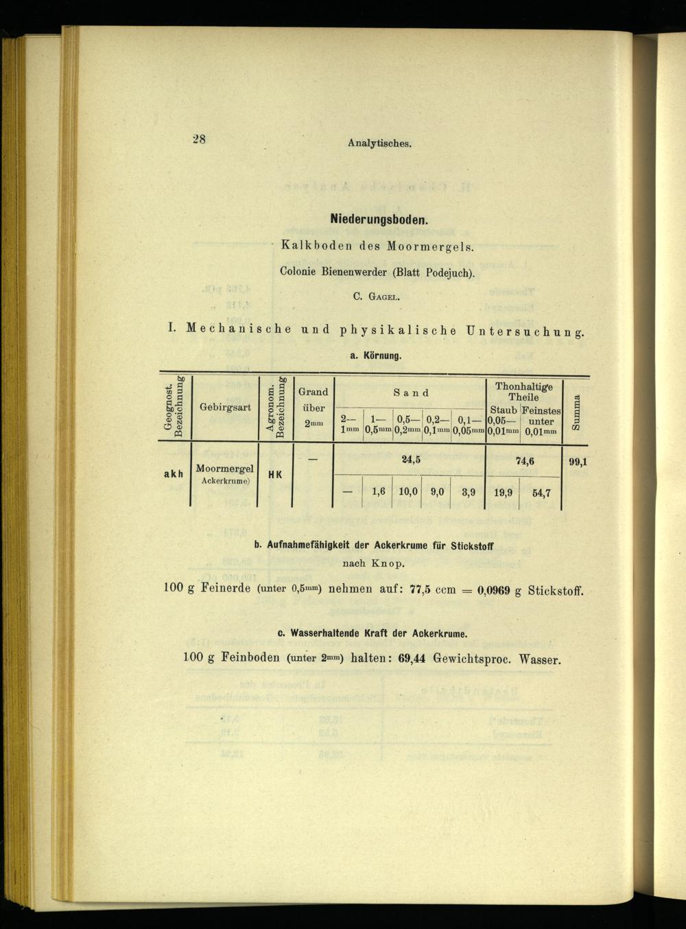 100 g Feinerde(unter 0,5=m) nehmen auf: 77,5 ccm— 0,0969 g Stickstoff.