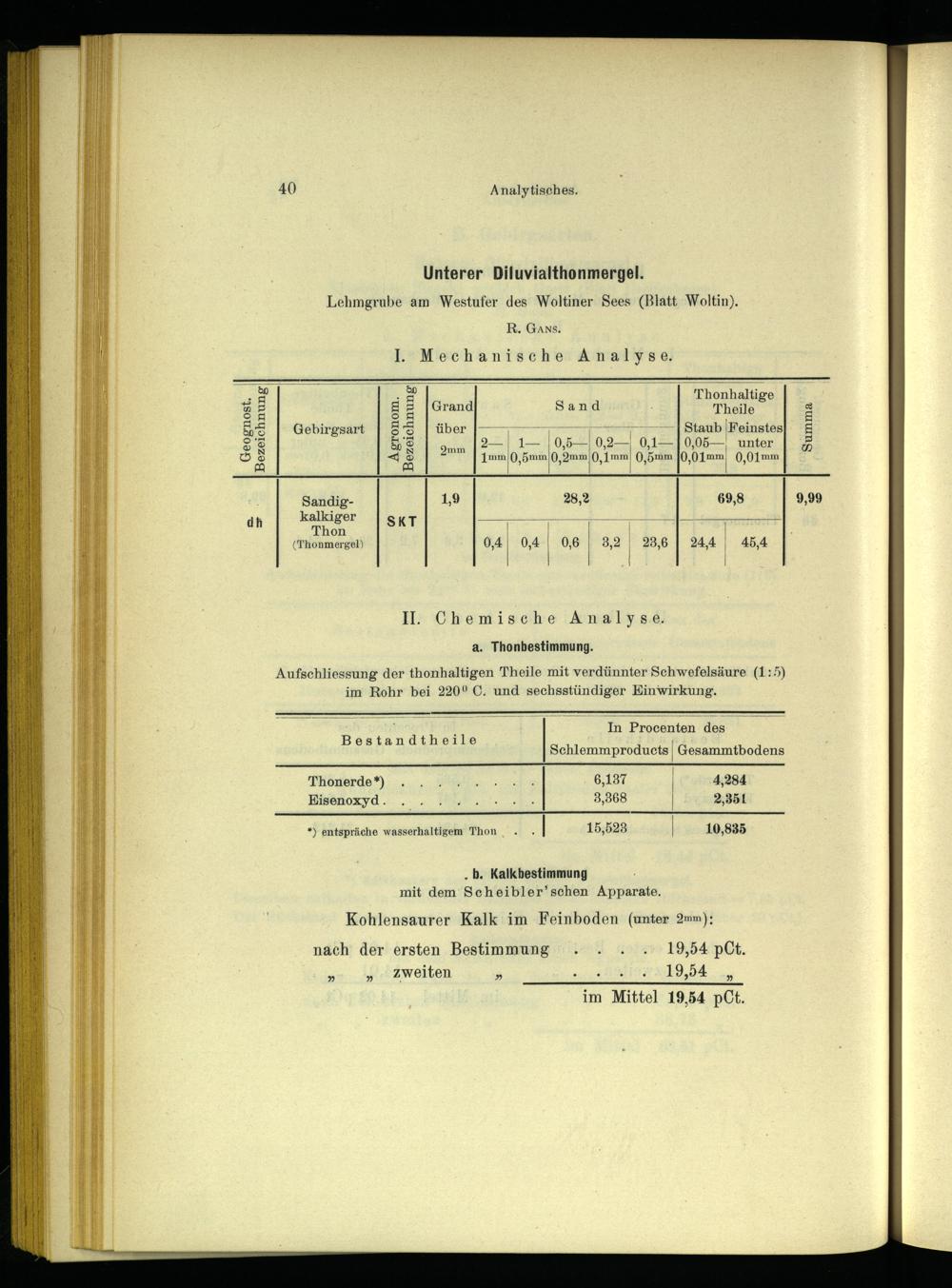 Unterer Diluvialthonmergel. Lehmgrube am Westufer des Woltiner Sees(Blatt Woltin). R. Gans. ]J. Mechanische Analyse.