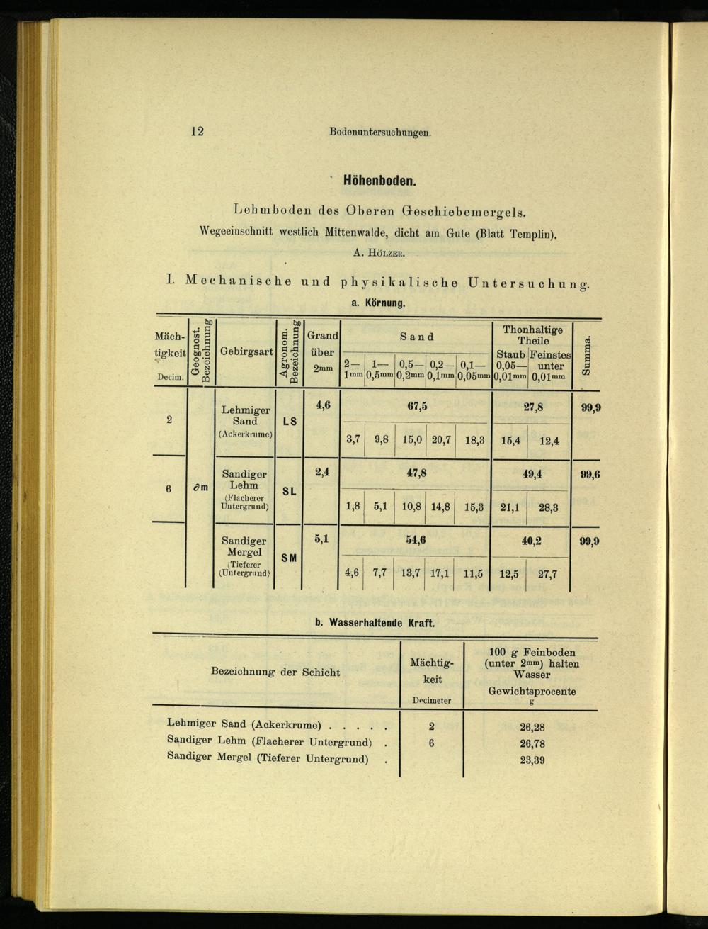 Lehmiger Sand(Ackerkrume)..... 2 26,28 Sandiger Lehm(Flacherer Untergrund). 6 26,78 Sandiger Mergel(Tieferer Untergrund). 23,89