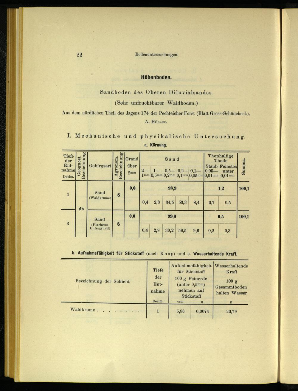 b. Aufnahmefähigkeit für Stickstoff(nach Knop) und c. Wasserhaltende Kraft.
