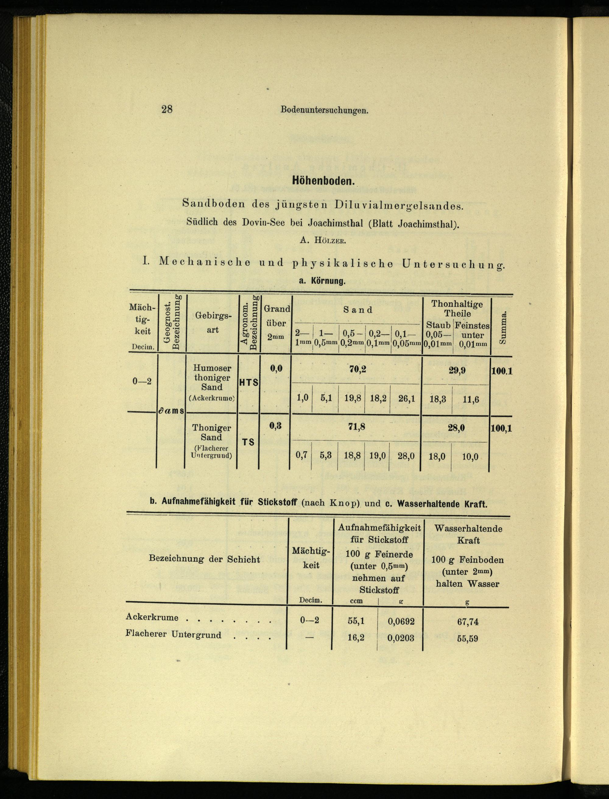 b. Aufnahmefähigkeit für Stickstoff(nach Knop) und c. Wasserhaltende Kraft.