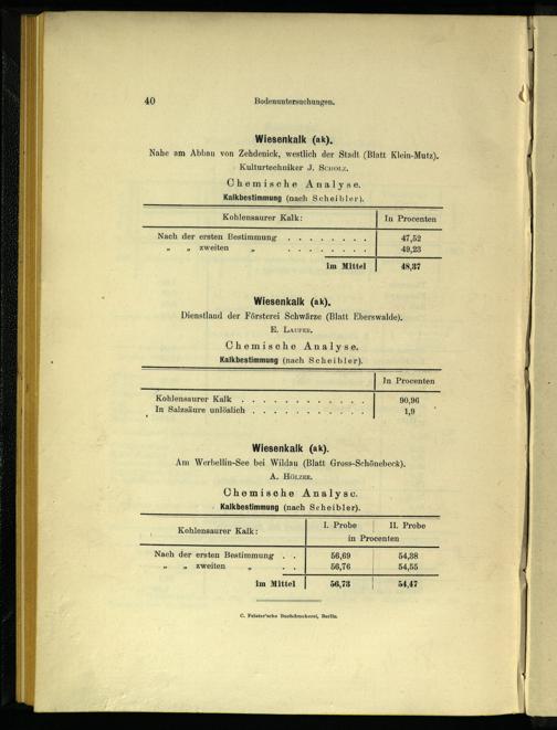 Wiesenkalk(ak). Am Werbellin-See bei Wildau (Blatt Gross-Schönebeck). A, HöL_1ZzeER. Chemische Analyse. kalkbestimmumg map Scheibler).