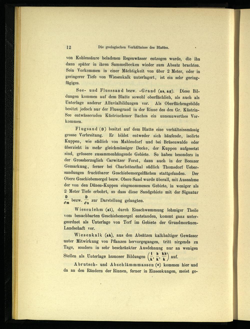 Wiesenkalk(ak), aus den Absätzen kalkhaltiger Gewässer unter Mitwirkung von Pflanzen hervorgegangen, tritt nirgends zu Tage, sondern in sehr beschränkter Ausdehnung nur an wenigen