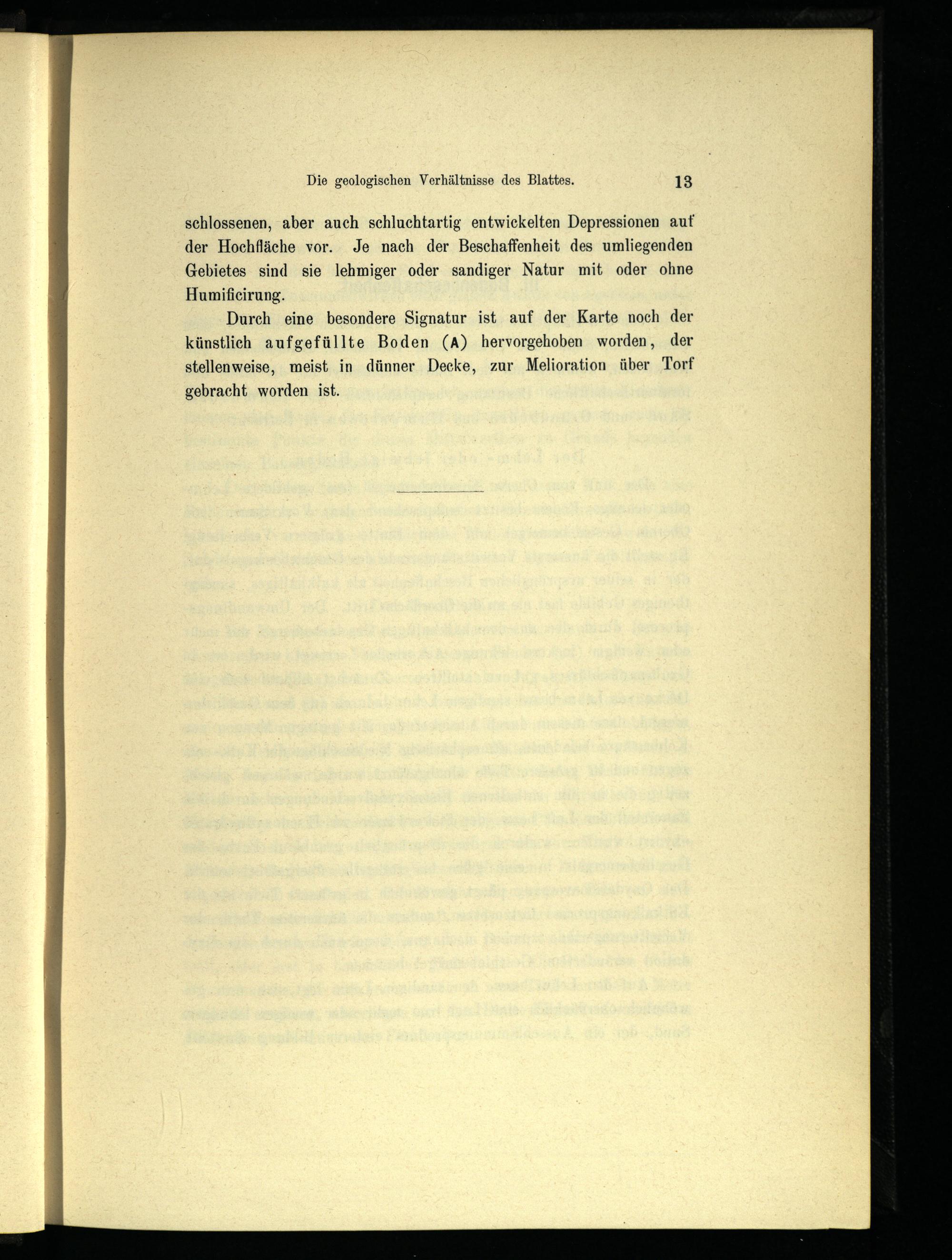 Durch eine besondere Signatur ist auf der Karte noch der künstlich aufgefüllte Boden(A) hervorgehoben worden, der stellenweise, meist in dünner Decke, zur Melioration über Torf gebracht worden ist.