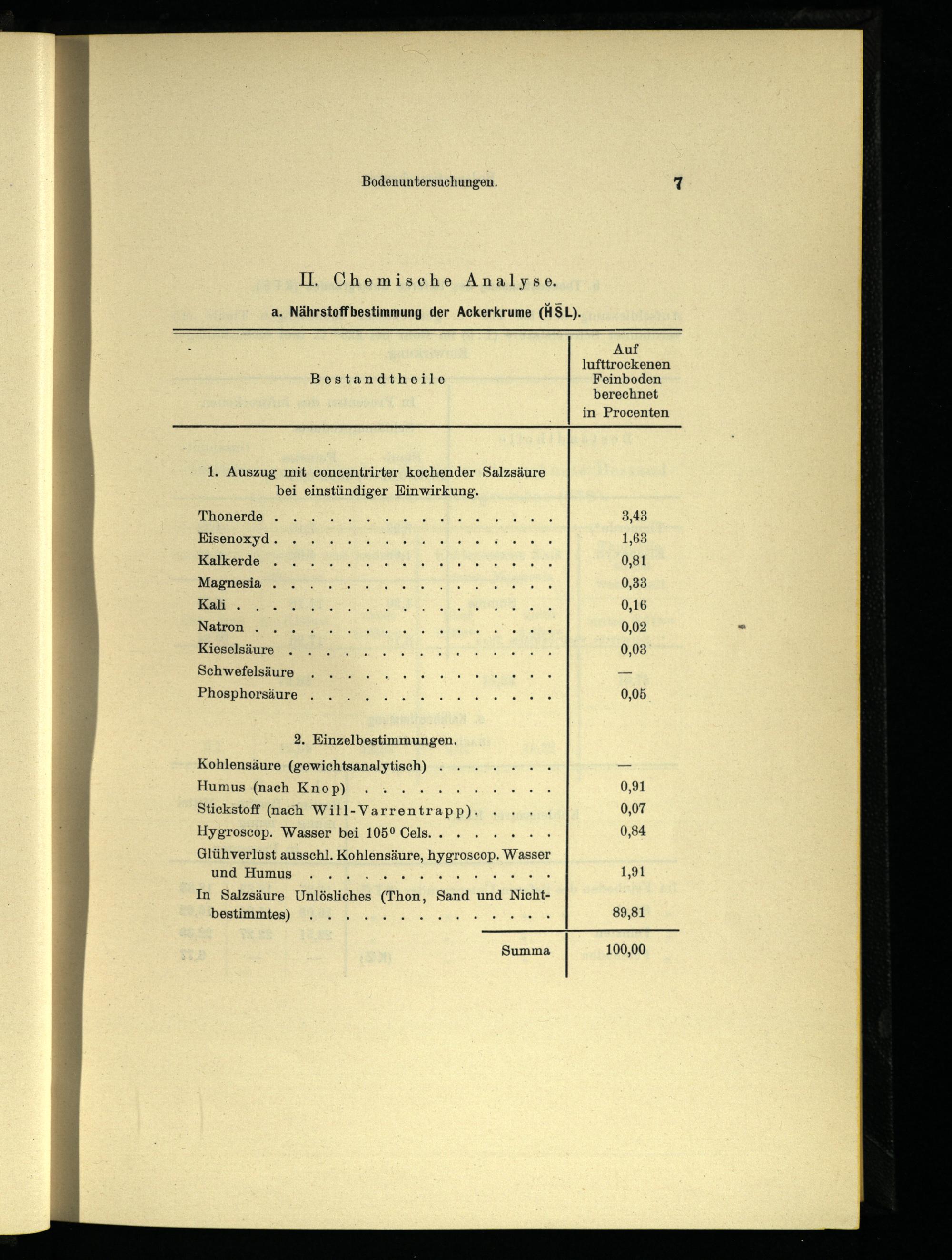 Il. Chemische Analyse. a. Nährstoffbestimmung der Ackerkrume(HSL).