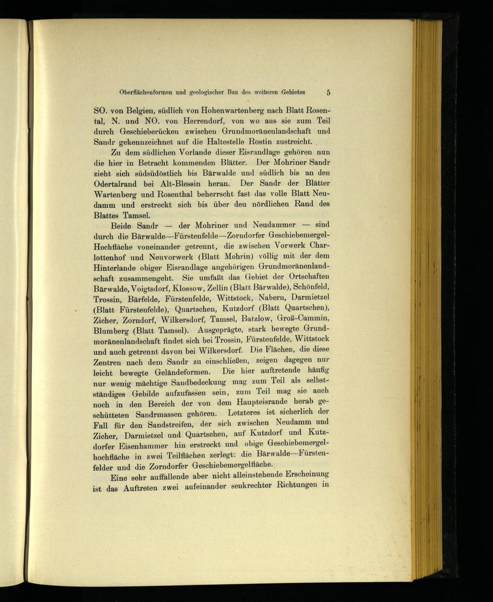 SO. von Belgien , südlich von Hohenwartenberg nach Blatt Rosental, N. und NO. von Herrendorf, von wo aus sie zum Teil durch Geschieberücken zwischen Grundmoränenlandschaft und Sandır gekennzeichnet auf die Haltestelle Rostin zustreicht.