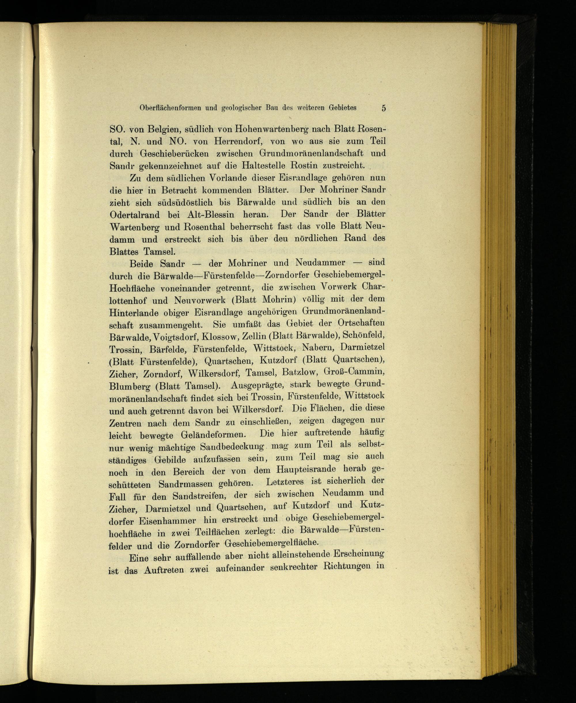 Zu dem südlichen Vorlande dieser Kisrandlage gehören nun die hier in Betracht kommenden Blätter. Der Mohriner Sandr zieht sich südsüdöstlich bis Bärwalde und südlich bis an den Odertalrand bei Alt-Blessin heran. Der Sandr der Blätter Wartenberg und Rosenthal beherrscht fast das volle Blatt Neu damm und erstreckt sich bis über deu nördlichen Rand des Blattes Tamsel.