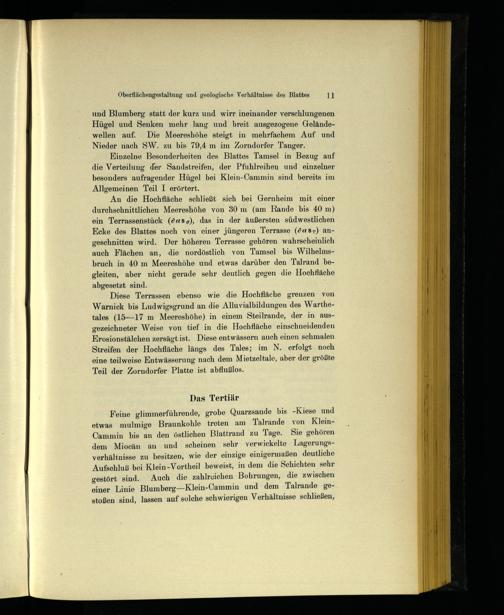Einzelne Besonderheiten des Blattes Tamsel in Bezug auf die Verteilung der Sandstreifen, der Pfuhlreihen und einzelner besonders aufragender Hügel bei Klein-Cammin sind bereits im Allgemeinen Teil I erörtert.