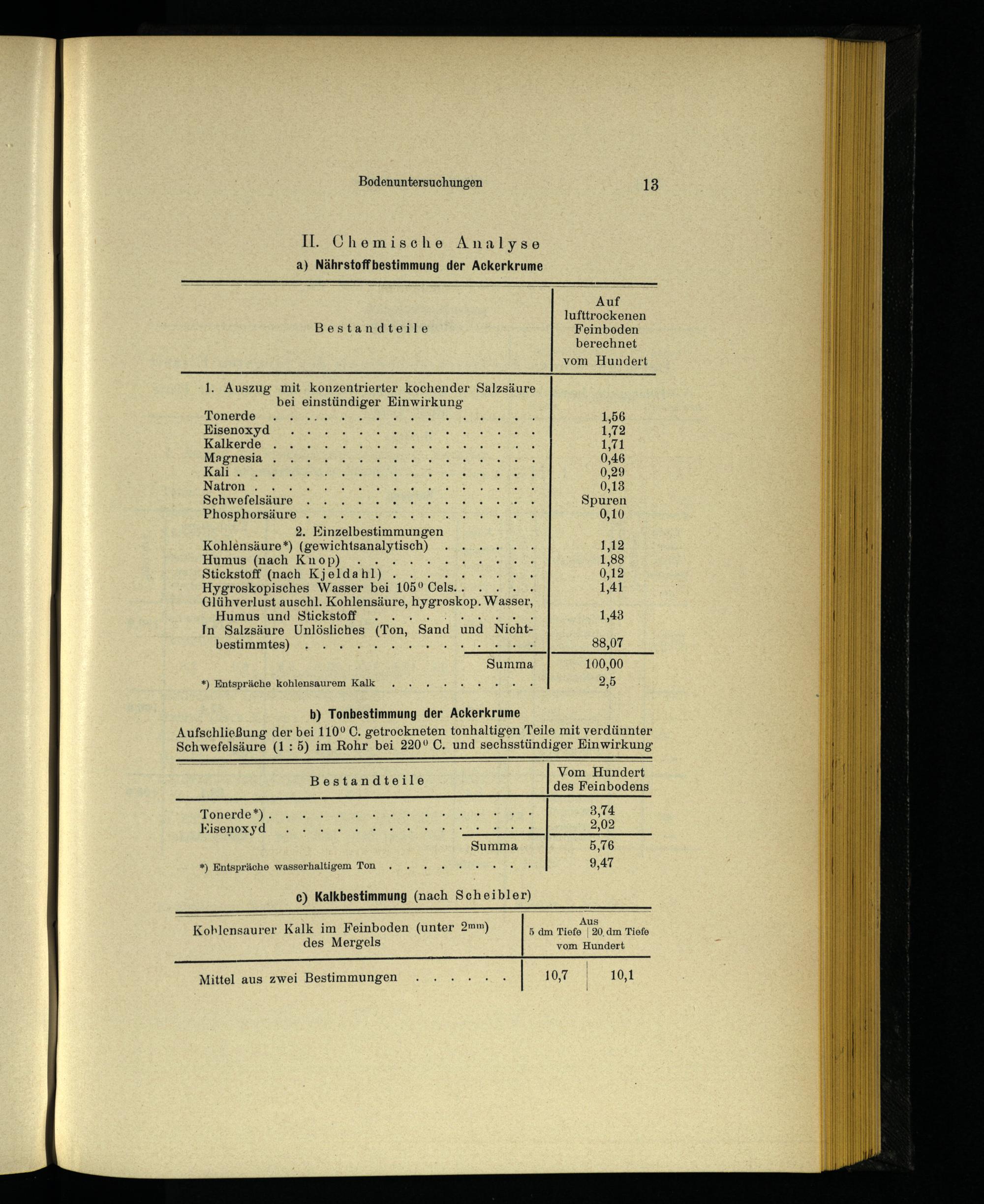 *) Entspräche kohlensaurem Kalk 2,5 b) Tonbestimmung der Ackerkrume