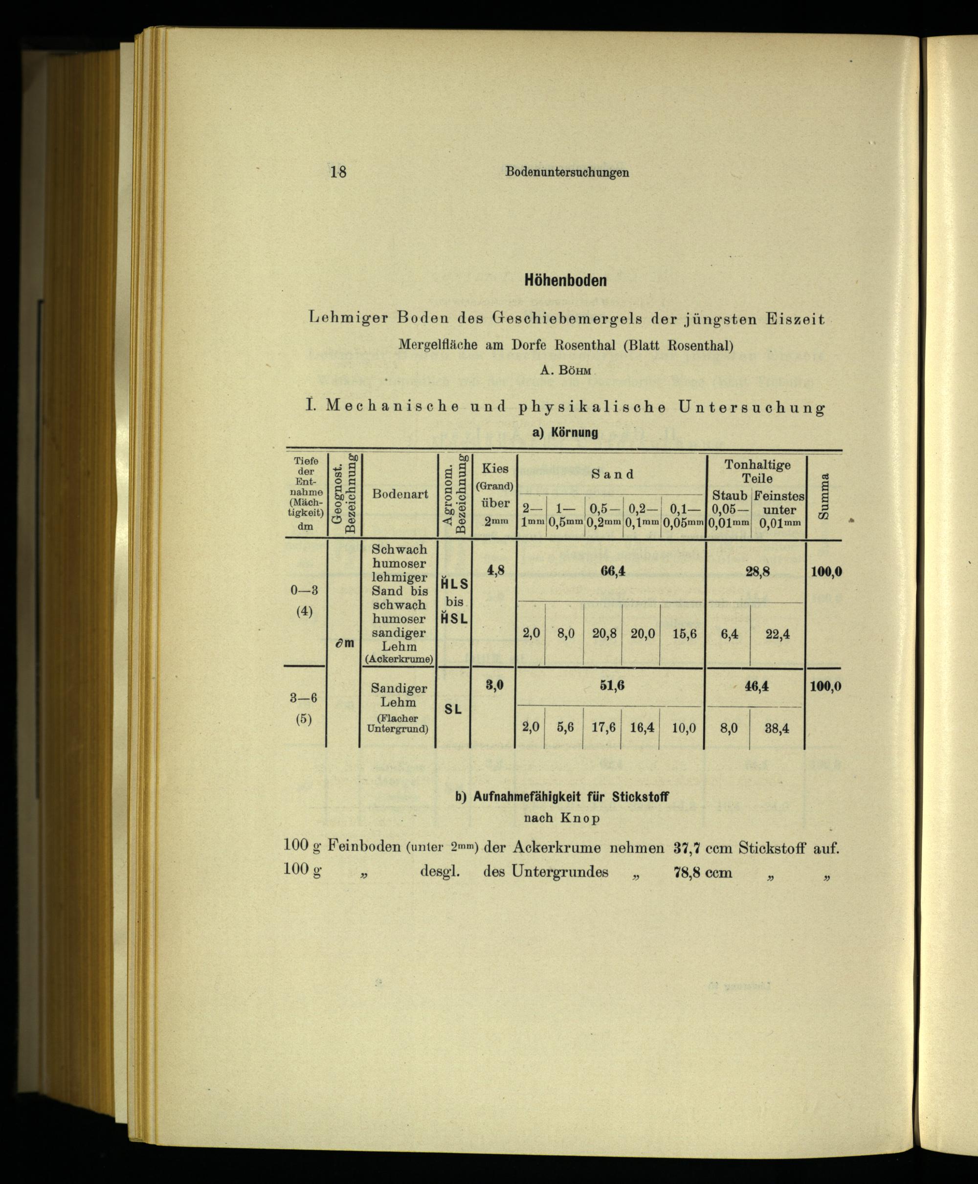b) Aufnahmefähigkeit für Stickstoff nach Knop