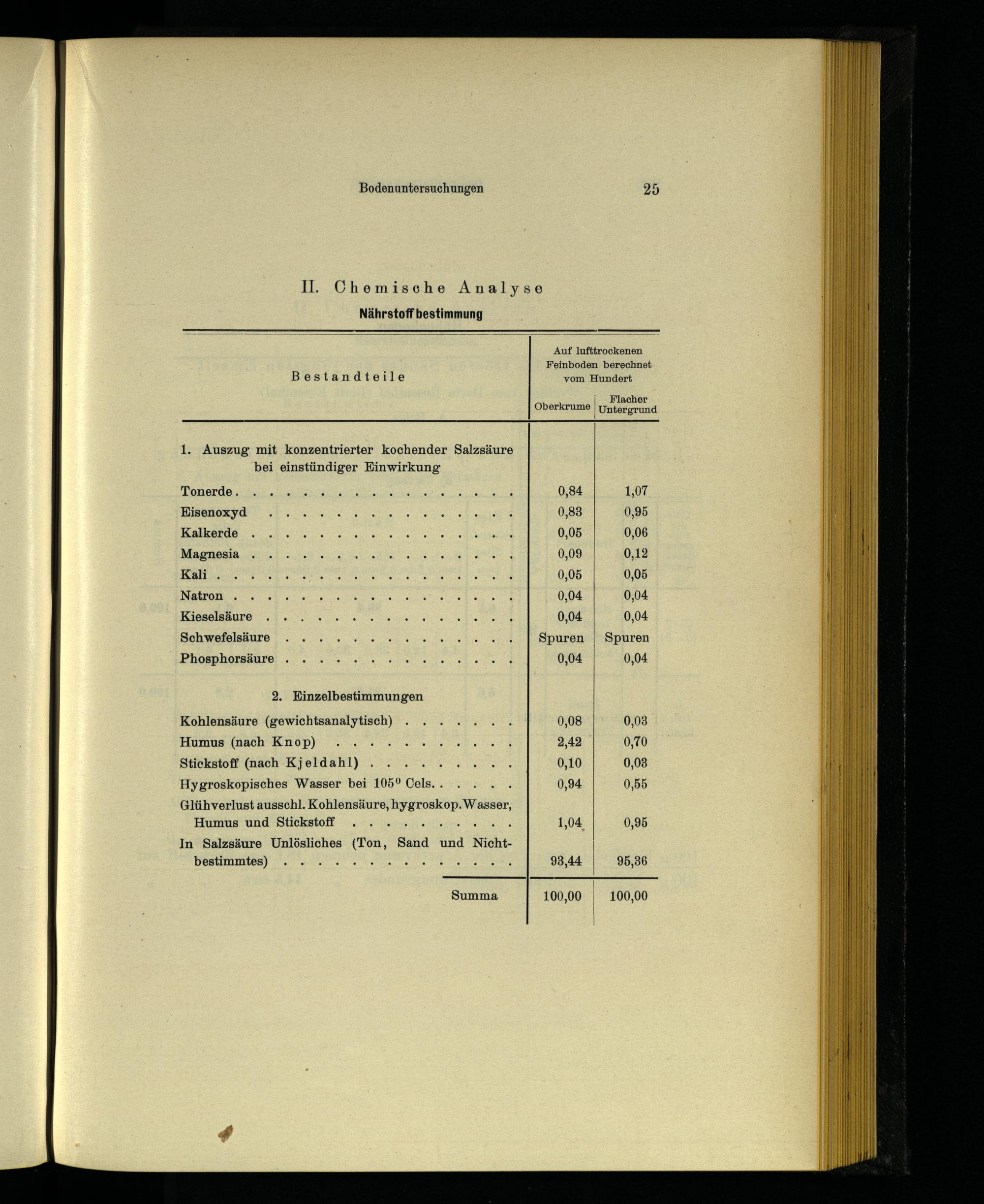 2. Einzelbestimmungen Kohlensäure(gewichtsanalytisch) Humus(nach Knop) Stickstoff(nach Kjeldahl).
