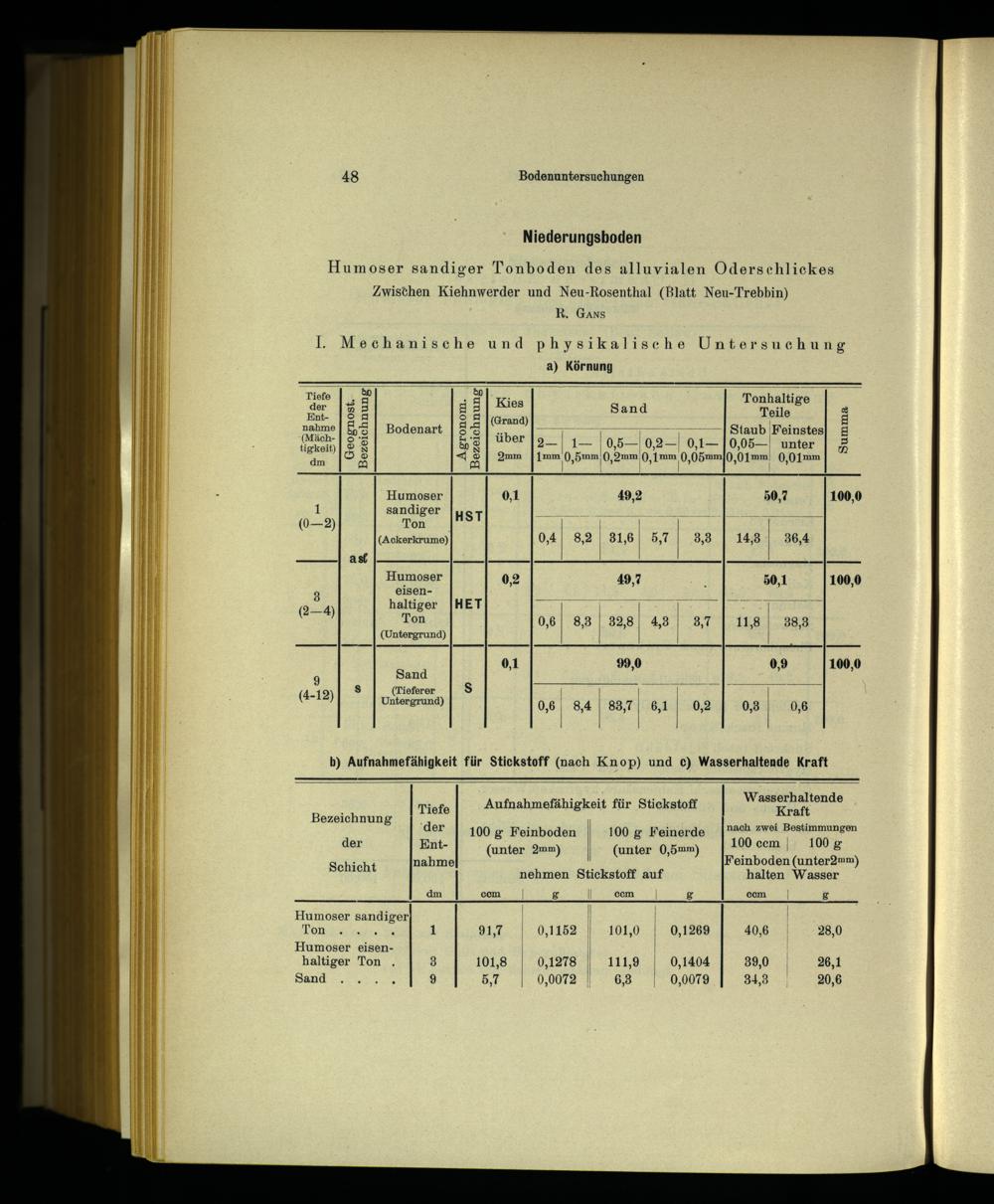 Humoser sandiger| N| Ton..., 1 917| 0,1152 1 101,0| Humoser eisen-||| haltiger Ton. 8 101,8 0,1278| 111,9|