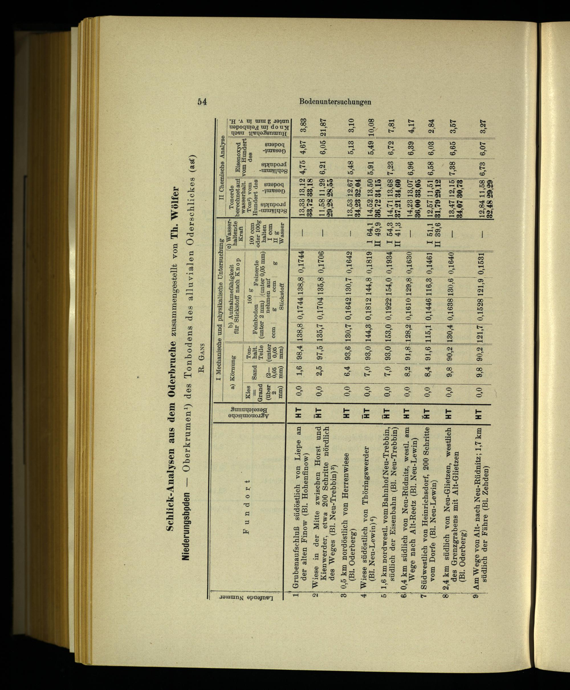 Niederungsbpden— Oberkrumen‘!) des Tonbodens des alluvialen ÖOderschlickes(ast) R. Gans