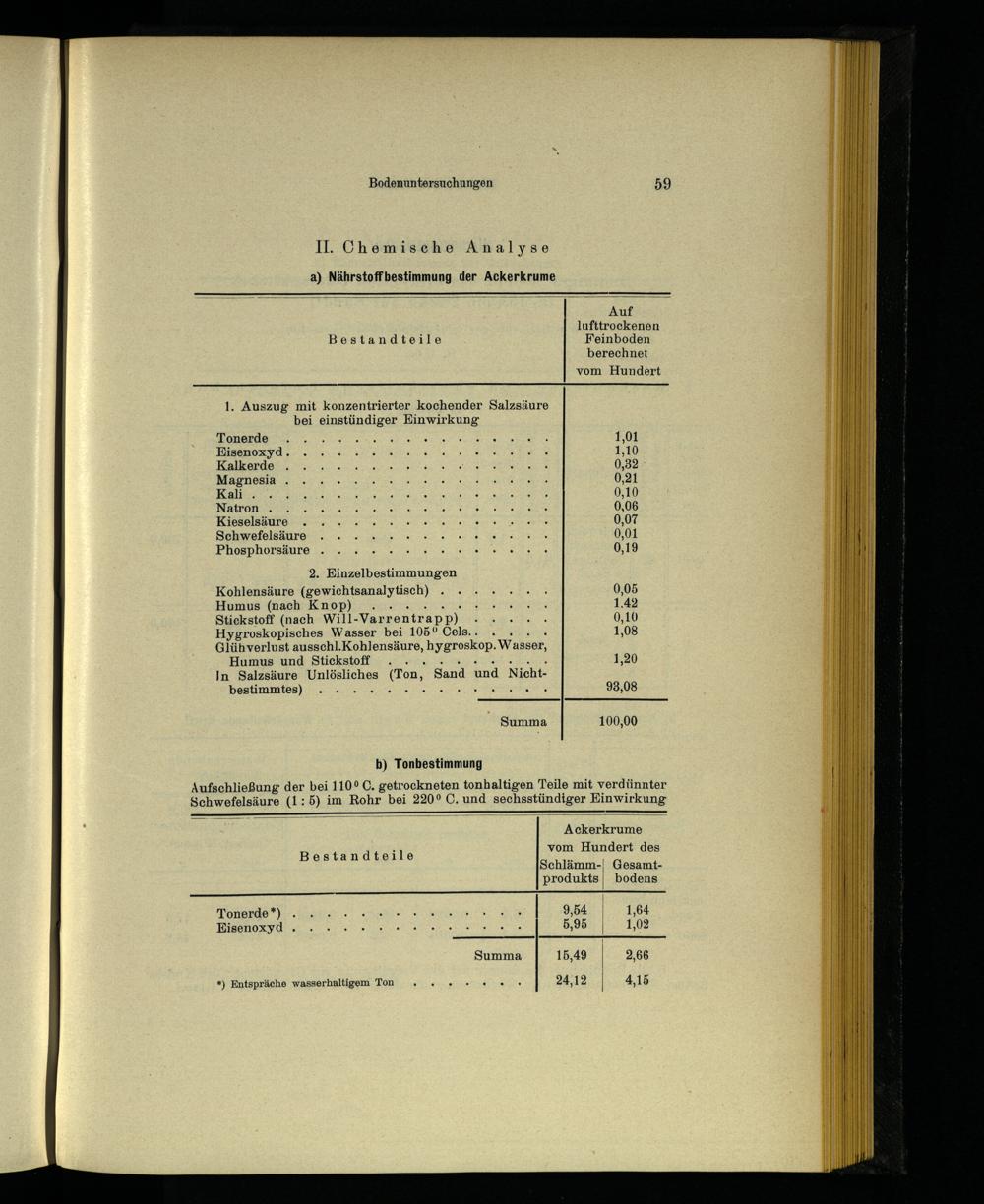Aufschließung der bei 110° C. getrockneten tonhaltigen Teile mit verdünnter Schwefelsäure(1:5) im Rohr bei 220° C. und sechsstündiger Einwirkung U——————————>——————>——>—>——>——>—————>>—> L———————————9 Ackerkrume vom Hundert des Schlämm-| Gesamtprodukts| bodens