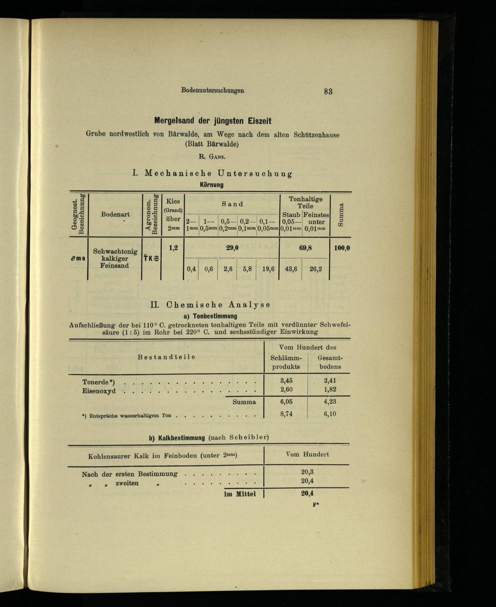 b) Kalkbestimmung(nach Scheibler) Kohlensaurer Kalk im Feinboden(unter 2mm)| Vom Hundert LH NuNLZA”” Nach der ersten Bestimmung en a Ka| 20,3