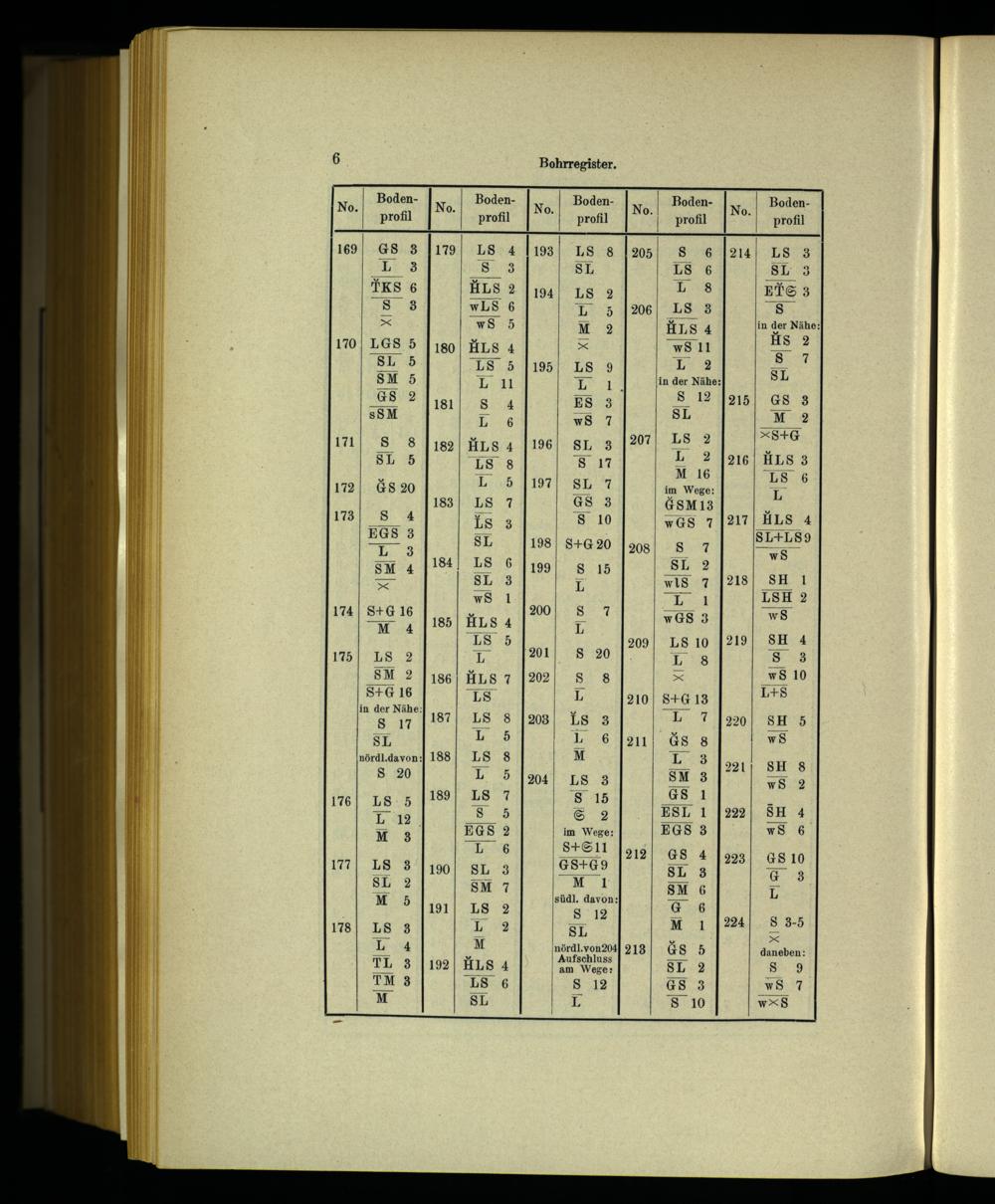 Bohrregister. BodenLS SE LS HLS 4 wS 11 L 2 in der Nähe: S da RNO|%S DS SL+LS9 wS SH 1 S+G 16 in der Nähe: Ss 17 nördl.davon: SS DDR HÄüA © südl. davon: 8 12 SL nördl.von204| 213 Aufschluss am Wege: Ss 12 5 DD AL DOV NAH&N% sr daneben: S 9 wS 7 w>S ES BIS | N z