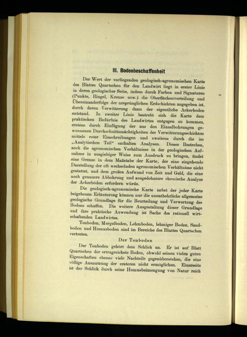 Die geologisch-agronomische Karte nebst der jeder Karte beigebenen Erläuterung können nur die unentbehrliche allgemeine geologische Grundlage für die Beurteilung und Verwertung des Bodens schaffen. Die weitere Ausgestaltung dieser Grundlage und ihre praktische Anwendung ist Sache des rationell wirtschaftenden Landwirtes.