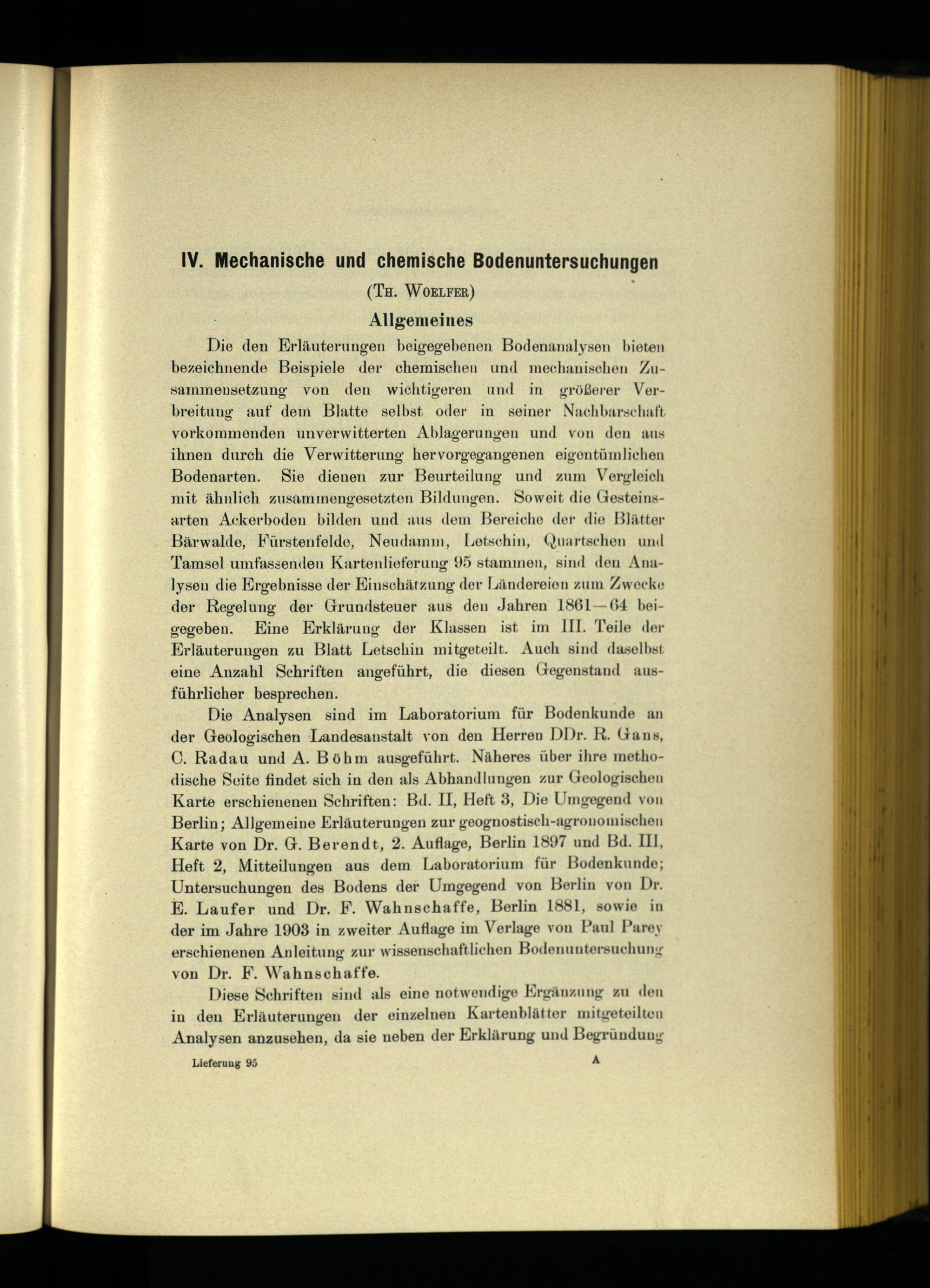 IV. Mechanische und chemische Bodenuntersuchungen (Ta. WOoELFER); Allgemeines