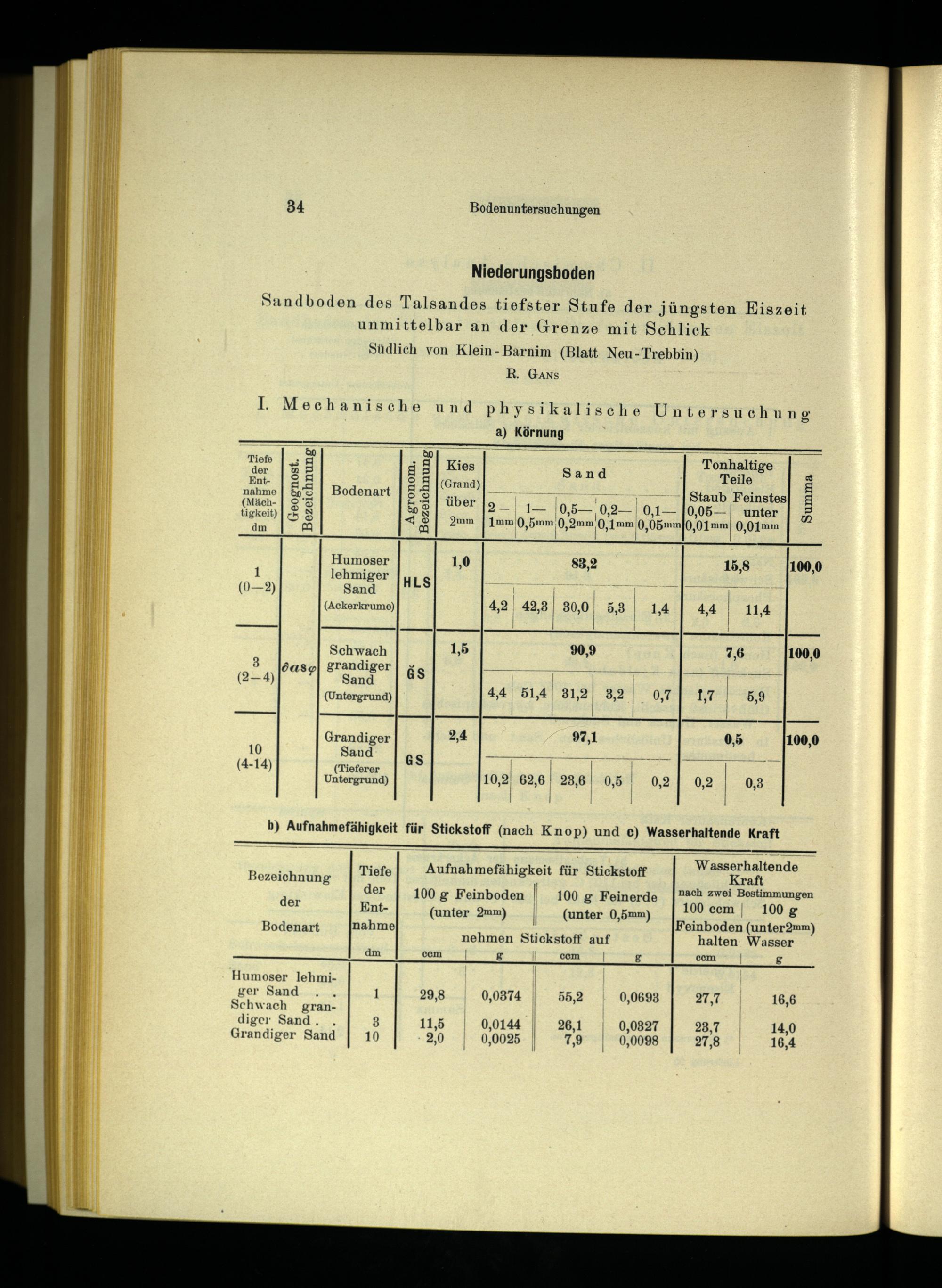 Hezeichhung Tiefe Aufnahmefähigkeit für Stickstoff Wasserhmltende a der| 100g Feinboden| 100 g Feinerde E00 CA TU
