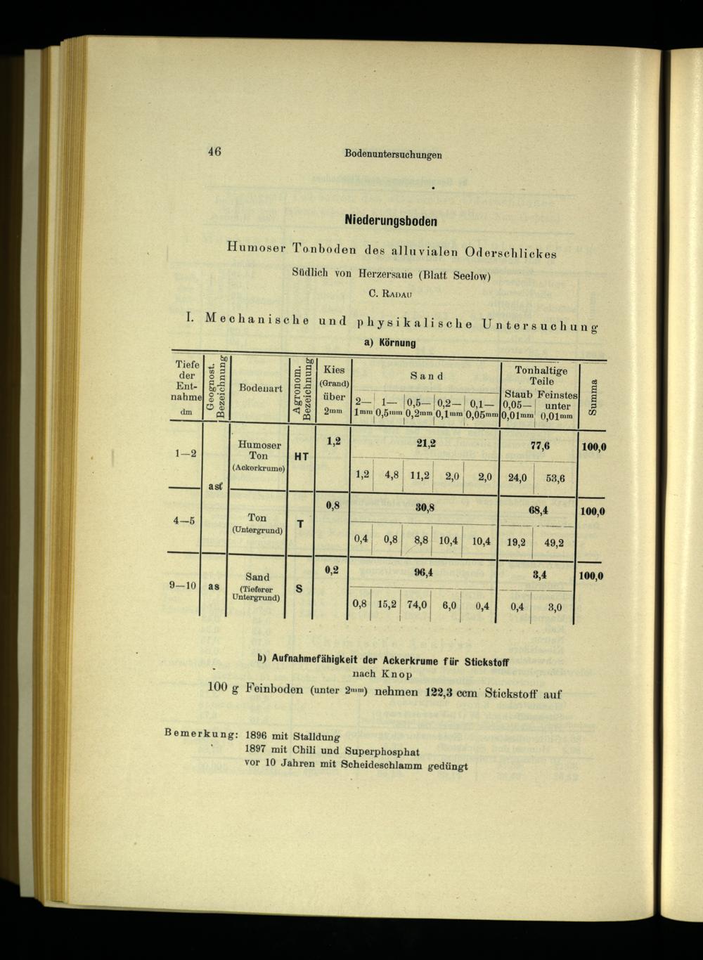 b) Aufnahmefähigkeit der Ackerkrume für Stickstoff nach Knop