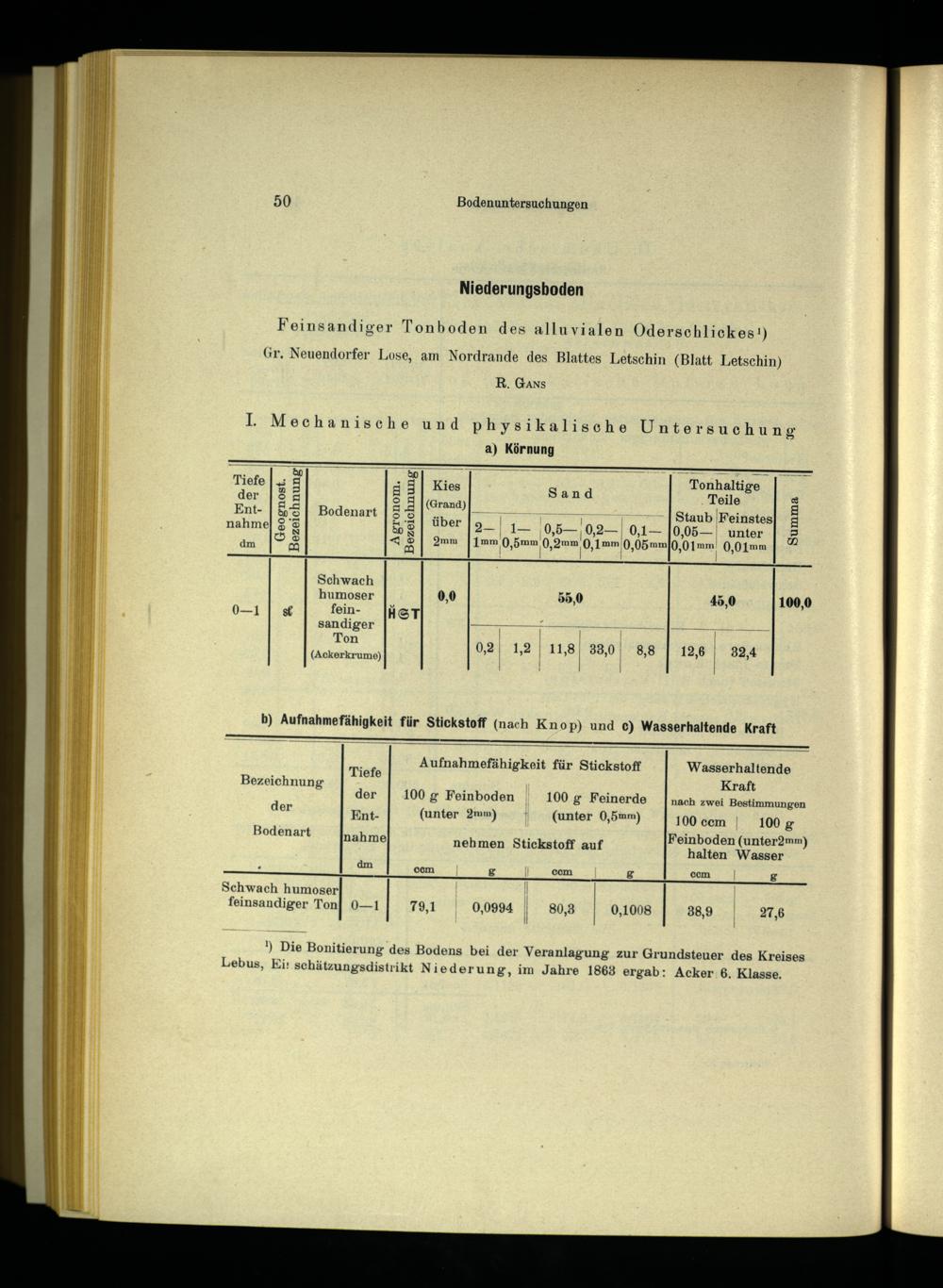 Bezeichnung).. Kraft 100 g Feinboden 100 g Feinerde[nach zwei Bestimmungen der