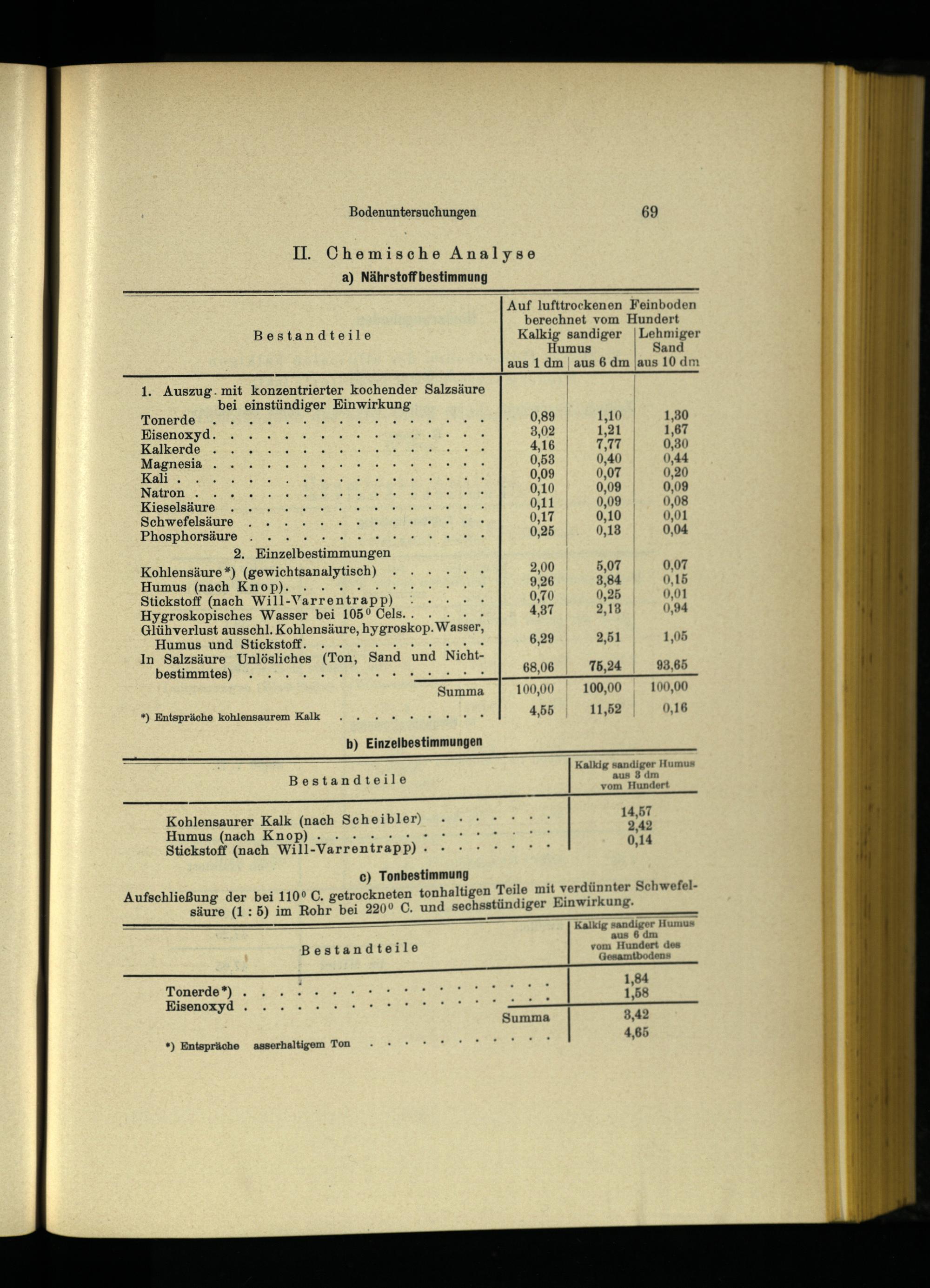 Humus(nach Knop).. KA Stickstoff(nach Will- Varrentrapp) a Zeh 0,70 0,25 0,01 Hygroskopisches Wasser bei 105° Cels... 4,37 2,18 0,94 Glühverlust ausschl. Kohlensäure, hygroskop. Wasser,