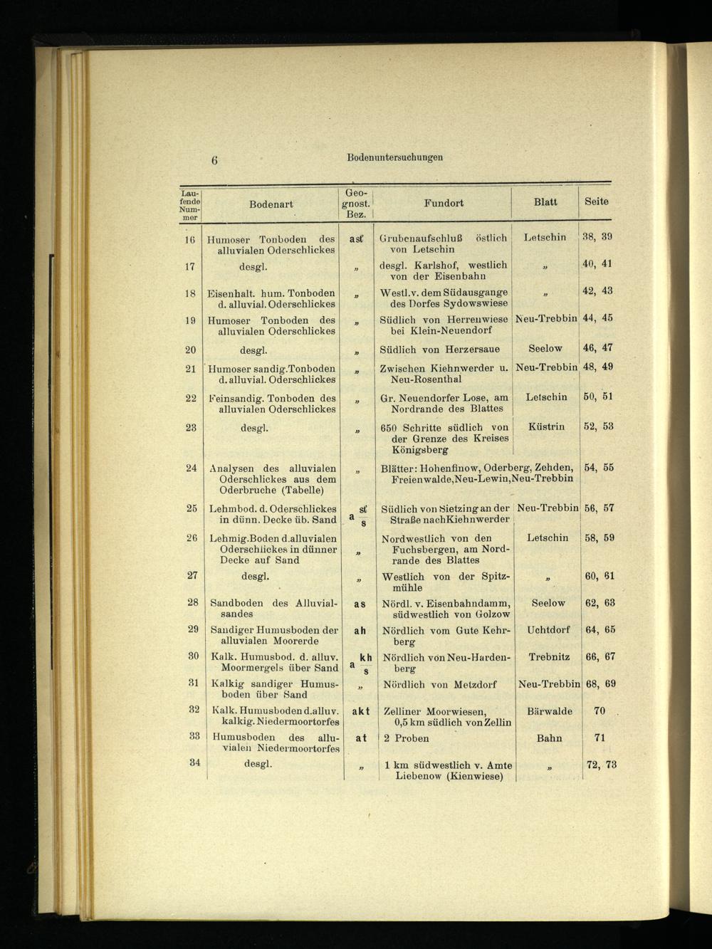 Analysen des alluvialen Oderschlickes aus dem Oderbruche(Tabelle)