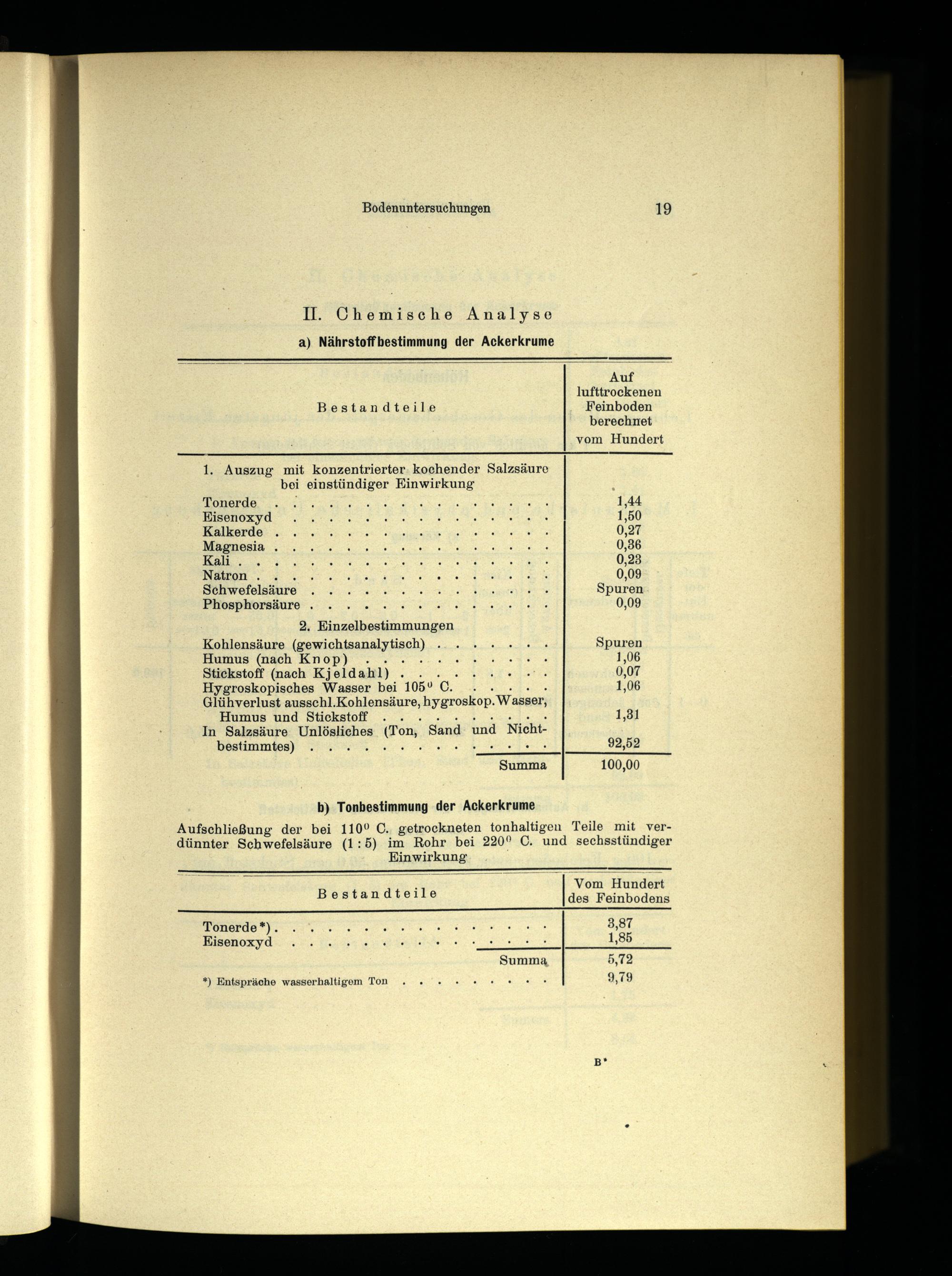 5 Sn Vom Hundert Bestandteile des Feinbodens N hebt Tonerde*)..,. 10. 0.000 4 0 0 Km nr 3,87 Eisenoxyd. 2. 0.0.0.4 0 1,85