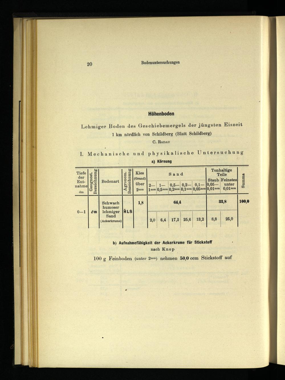 b) Aufnahmefähigkeit der Ackerkrume für Stickstoff nach Knop