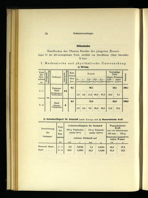 b) Aufnahmefähigkeit für Stickstoff(nach Knop) und c) Wasserhaltende Kraft