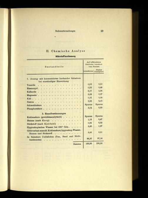 2. Einzelbestimmungen Kohlensäure(gewichtsanalytisch). Humus(nach Knop):. Stickstoff(nach Kjeldahl) Hygroskopisches Wasser bei 105° Cels..