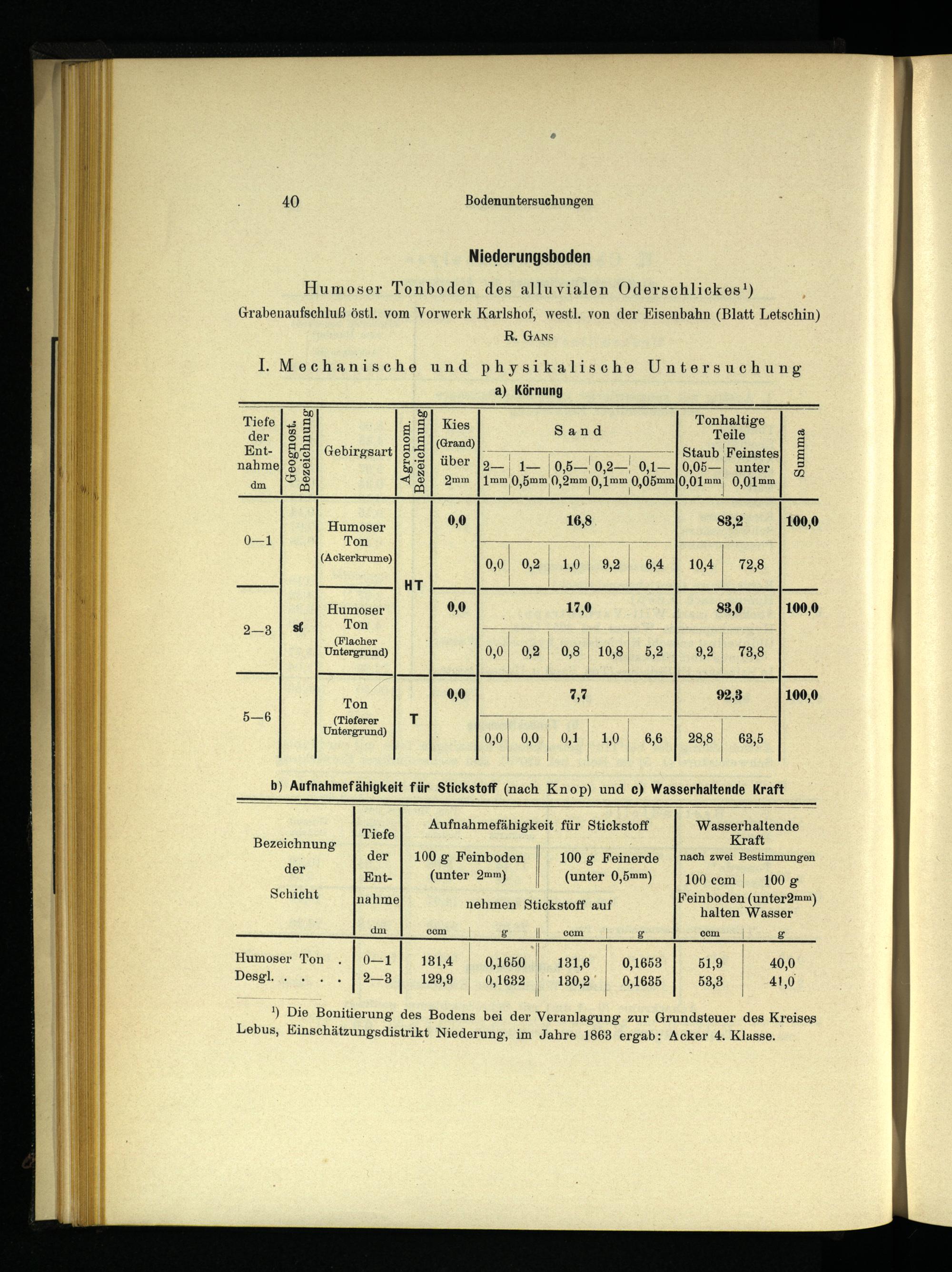 I]. Mechanische und physikalische Untersuchung a) Körnung
