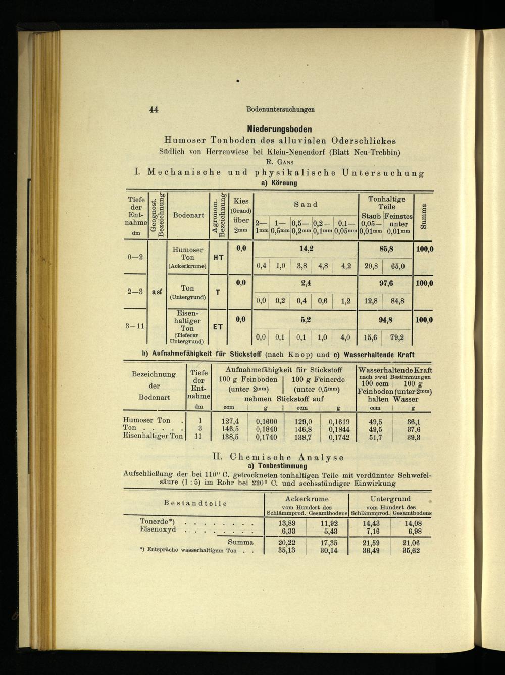 ]Wasserhaltende Kraft nach zwei Bestimmungen 100 ccm| 100 g Feinboden(unter 2mm) halten Wasser