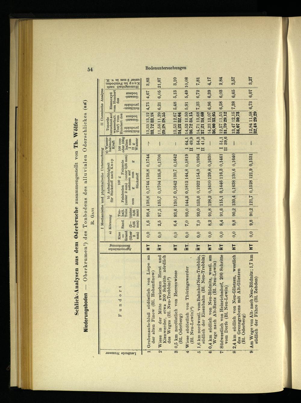 Niederungsboden— Oberkrumen!) des Tonbodens des alluvialen Oderschlickes(as) R. Gans