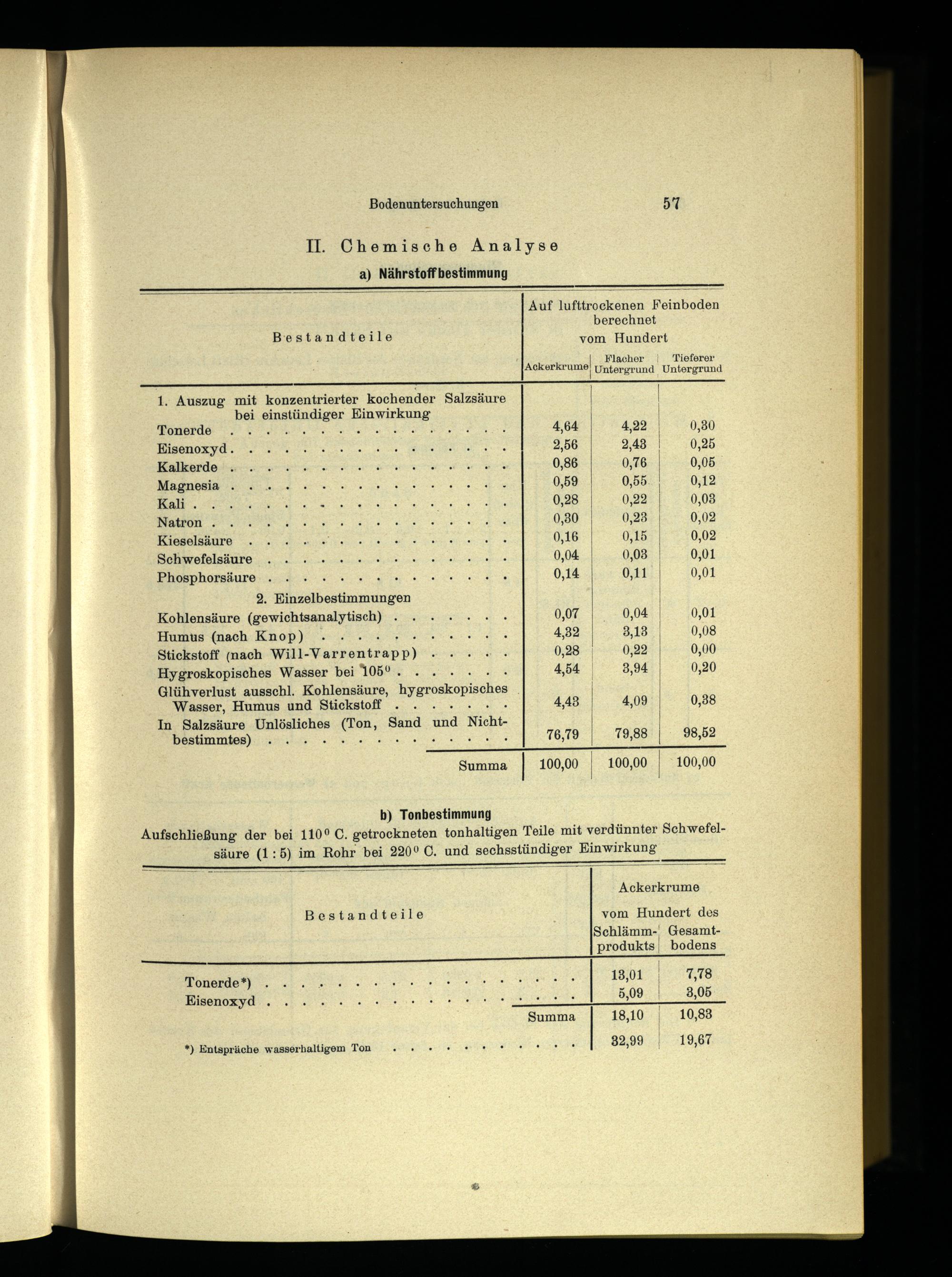 2. Einzelbestimmungen Kohlensäure(gewichtsanalytisch) Ve 0,07 0,04 Humus(nach Knop).- en 4,32| 83,183 Stickstoff(nach Will- Varrentrapp) A 0,28 1 0,82| Hygroskopisches Wasser bei 105°..... 4,54 83,94