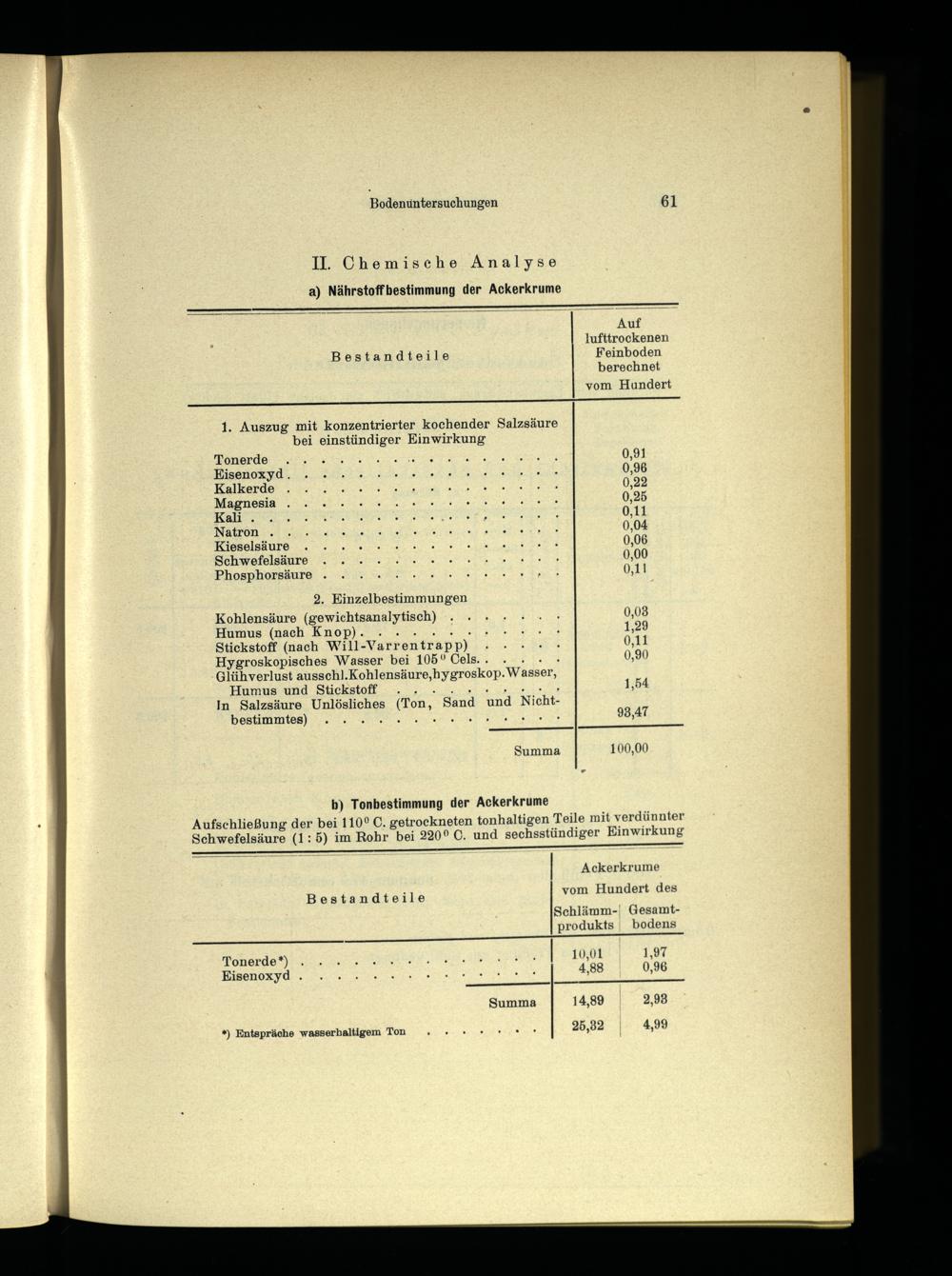 Kohlensäure(gewichtsanalytisch)...+.+ 0,08 Humus(nach Knop). 2... 1. HE nA 1,29 Stickstoff(nach Will-Varrentrapp).+.++ 0,11 Hygroskopisches Wasser bei 105° Cels.. Ve 0,90 Glühverlust ausschl.Kohlensäure,hygroskop. Wasser,