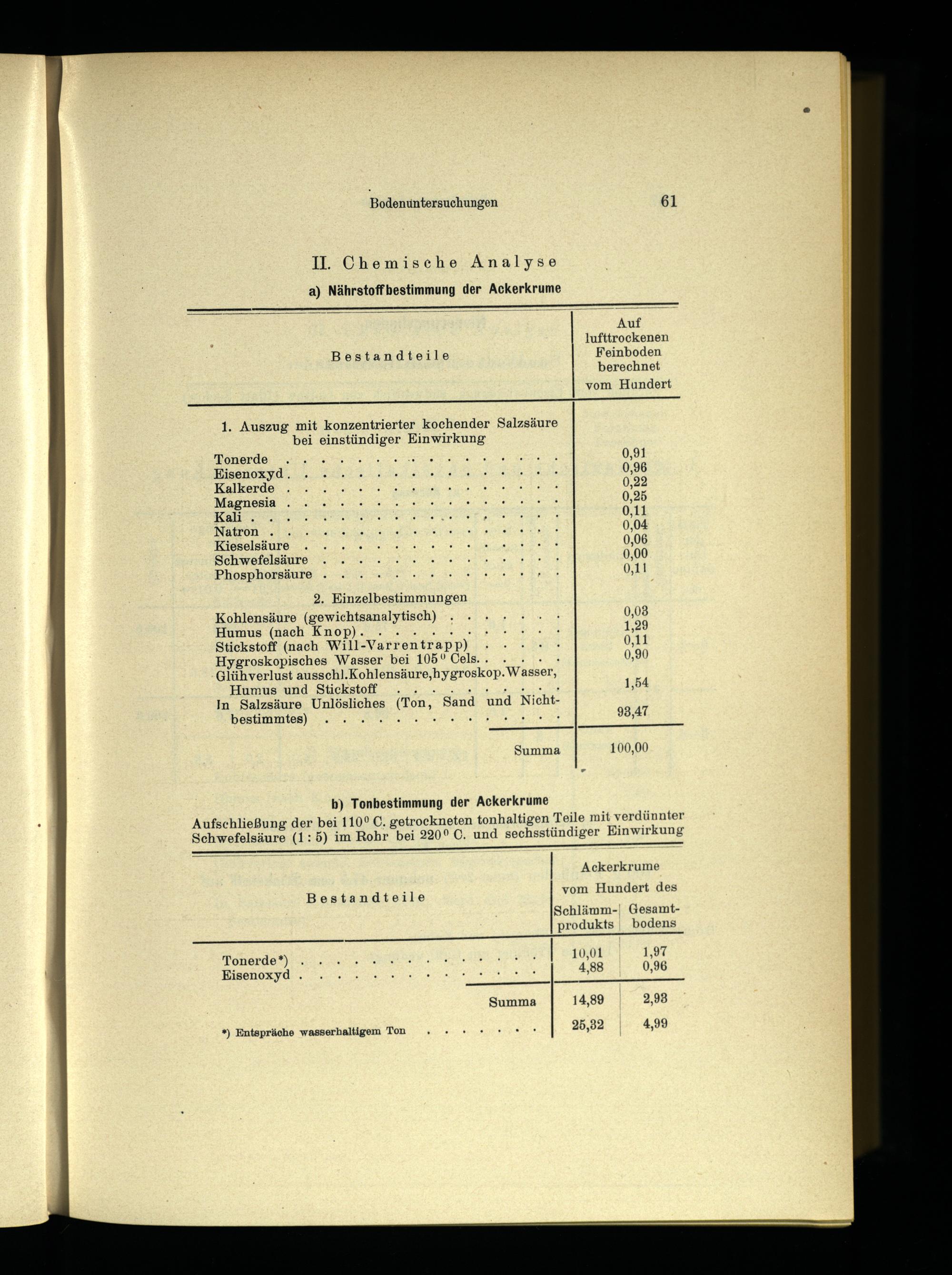 *) Entspräche wasserhaltigem Ton..++** 25,82 4,99