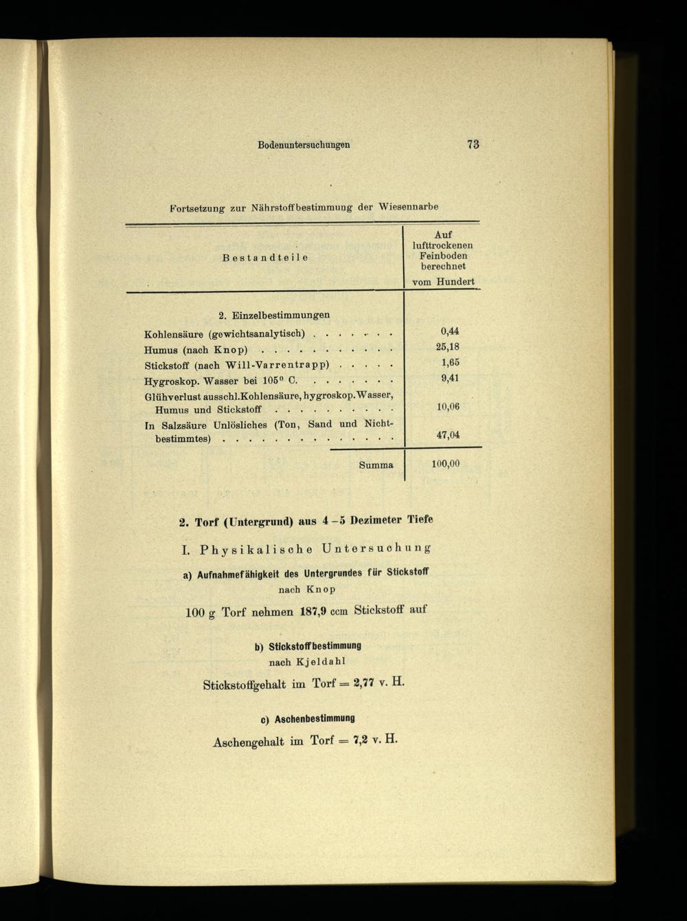 a) Aufnahmefähigkeit des Untergrundes für Stickstoff nach Knop