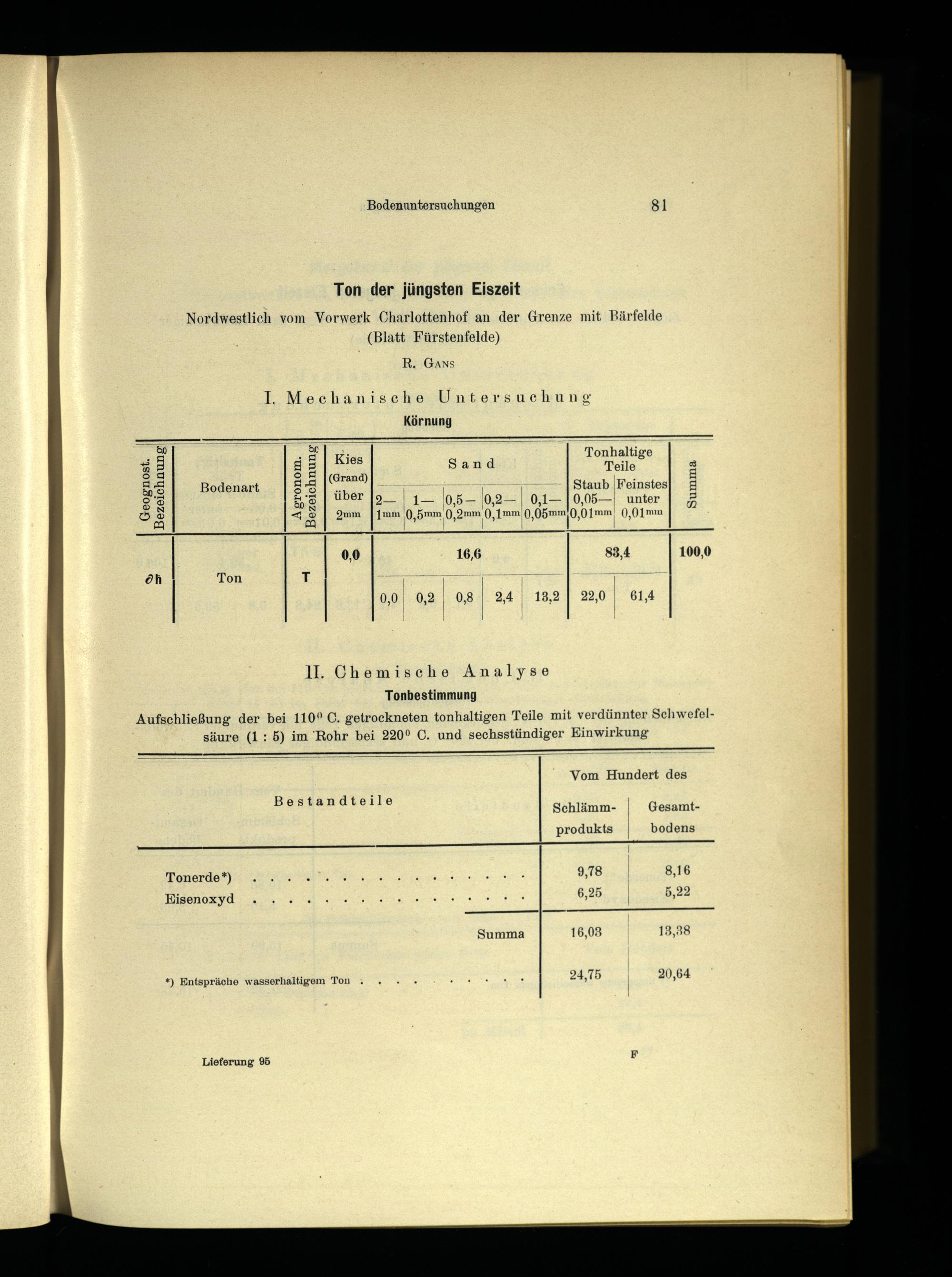 Bd ; Tonhaltige a Sand Teile (Grand). üb=| Staub Feinstes über|9_| 1_|0,5— 0,2—| 0,1—|0,05— unter 99mm|1]mm 0,ömm 0, Zmm 0, mm(0,06mm 0,0 Lam 0,01mm ||||